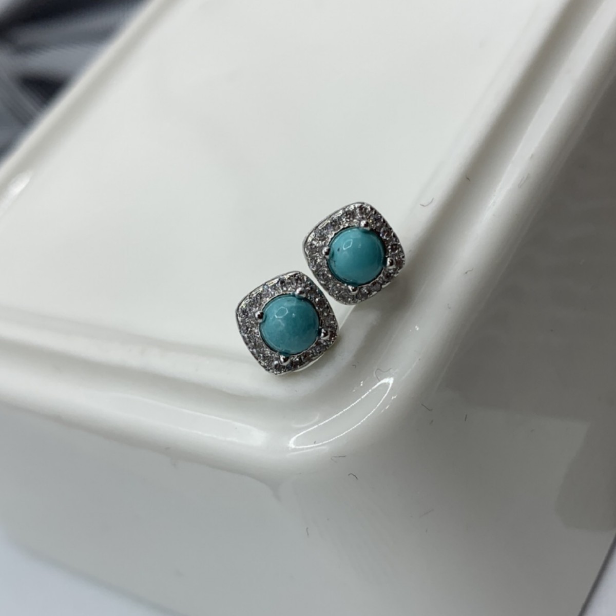 天然原鉱緑松石ピアス925銀モザイク緑松石ピアス