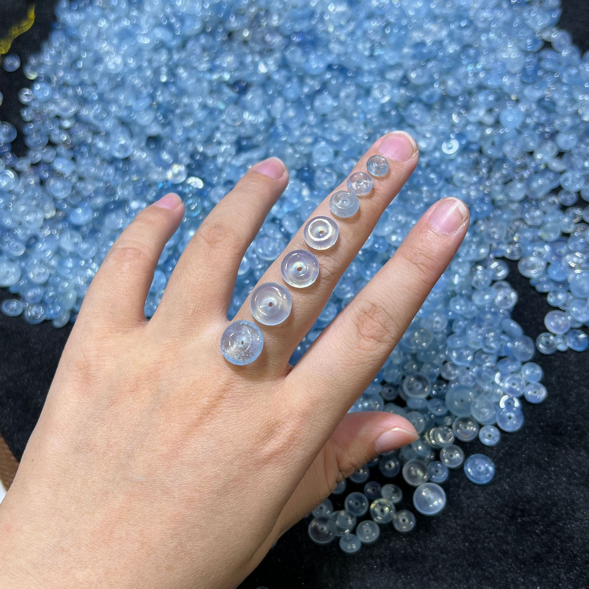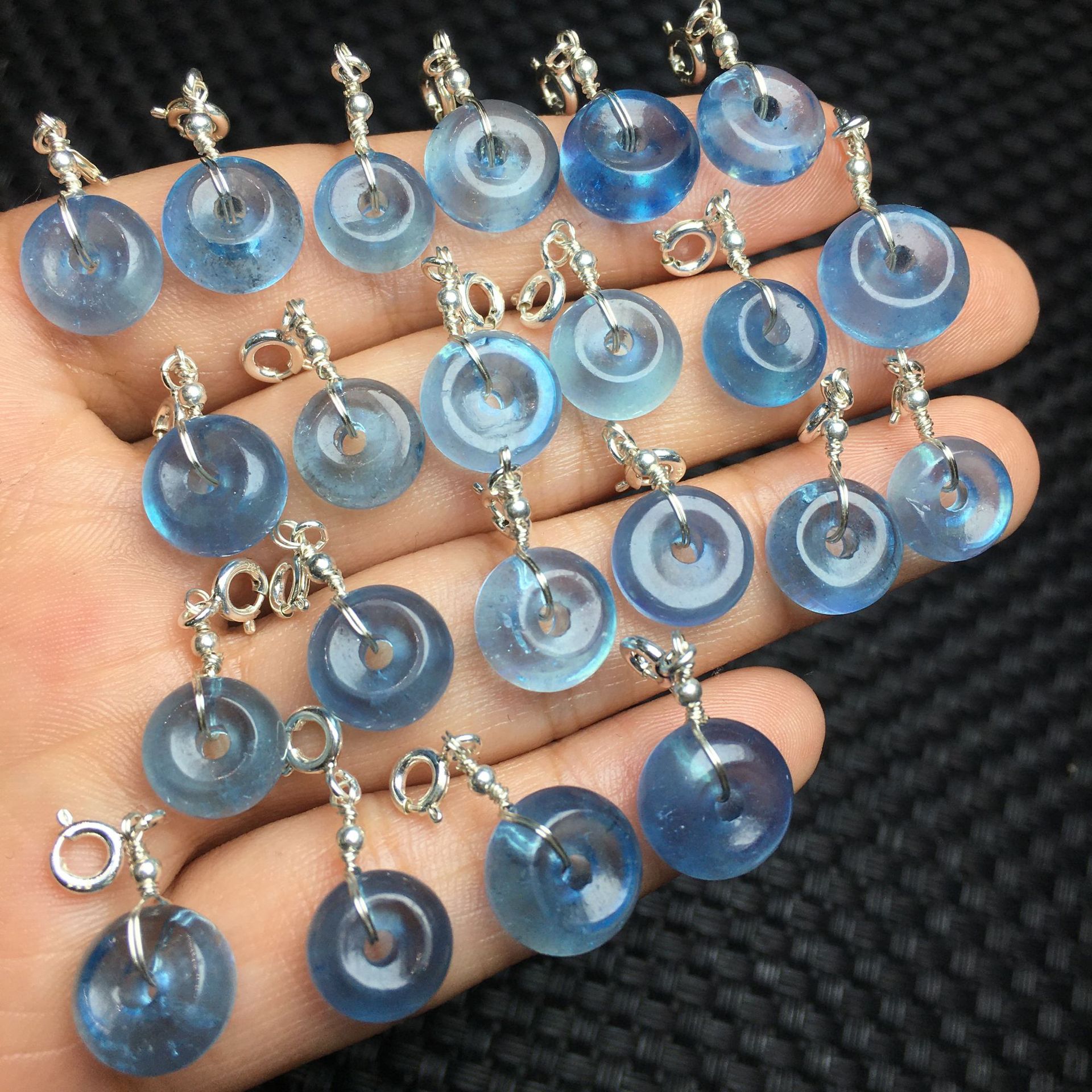 天然海藍宝平安ボタン小アクセサリーdiy手作り海藍宝アクセサリー海藍宝ボタン小部品