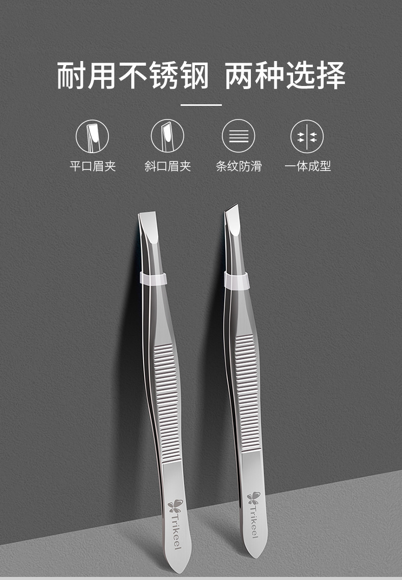 眉毛夹镊子修眉拔毛钳拔胡子夹眉毛钳不锈钢毛夹平斜口小镊子眉夹
