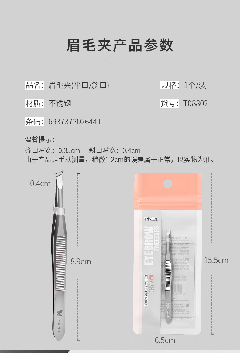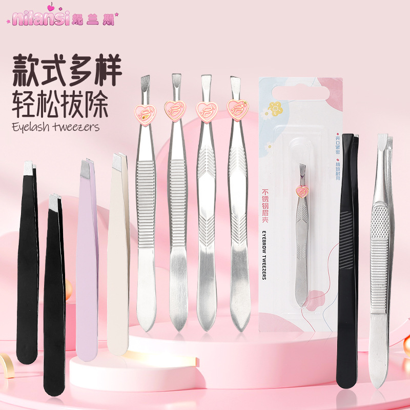 不锈钢眉夹插卡包装胡须拔毛钳修眉小镊子贴睫毛工具多用途眉毛夹