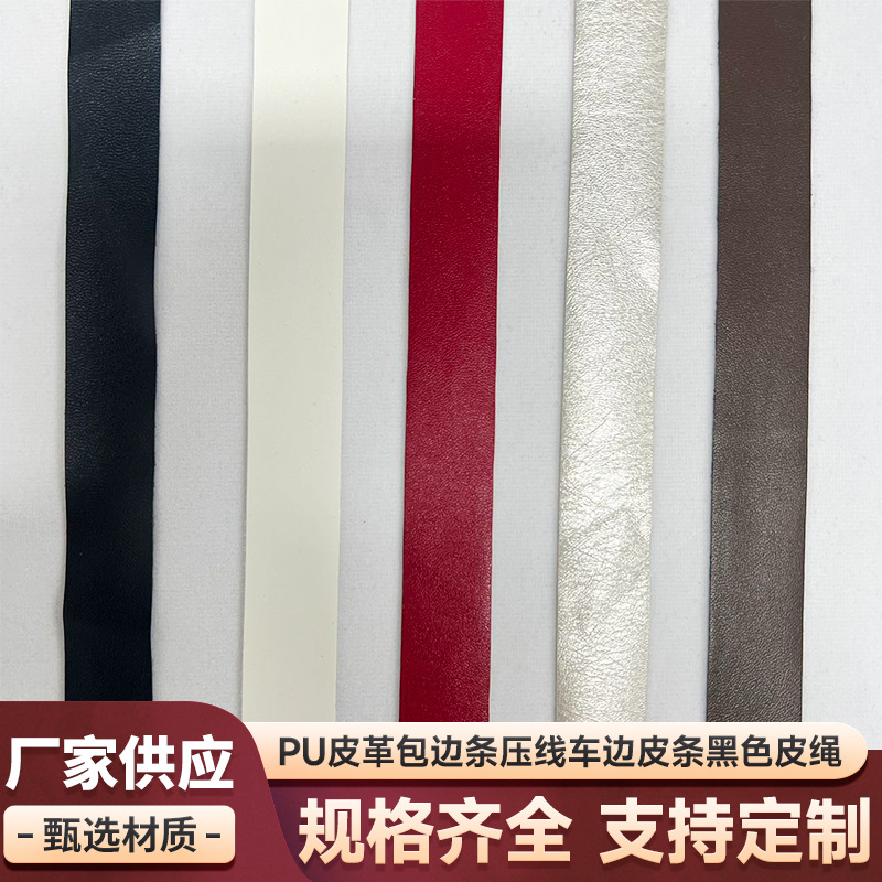 Pu革の縁を巻いて線の縁の皮の条の黒色の皮のロープの車の皮の織布は薄い皮の単層の皮の材料の服装の補助材料を持ちます。
