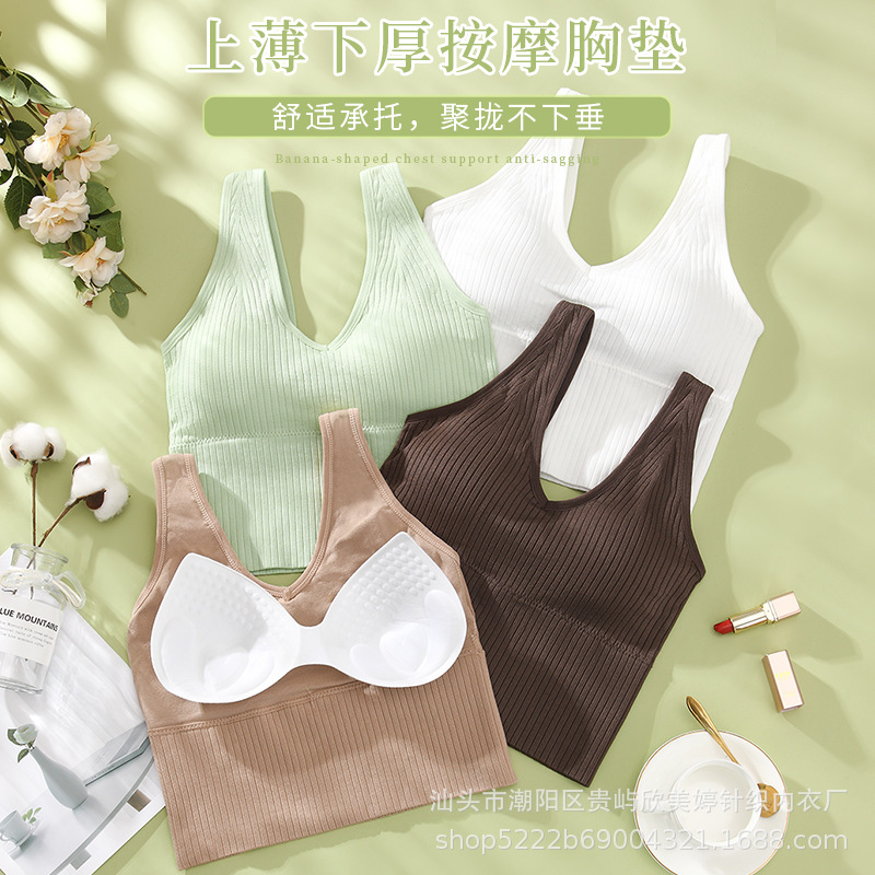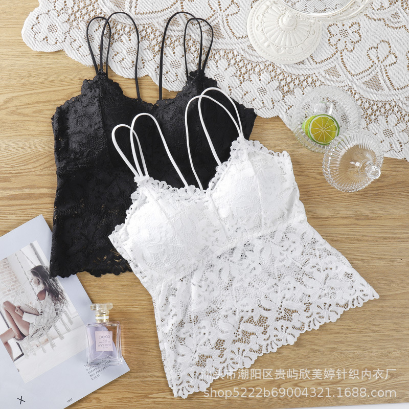 【セット】クロスボーダーレースブラジャー下着女性用ロング丈美背中キャミソール薄手胸巻きブラインナー付きブラトップ
