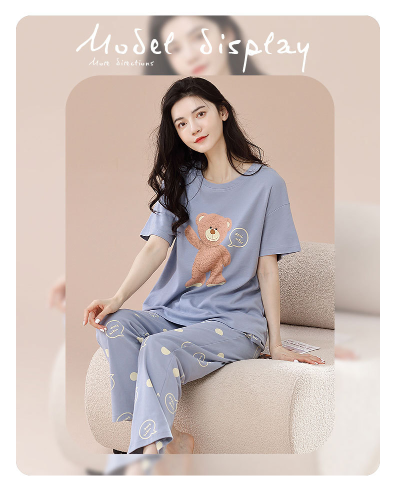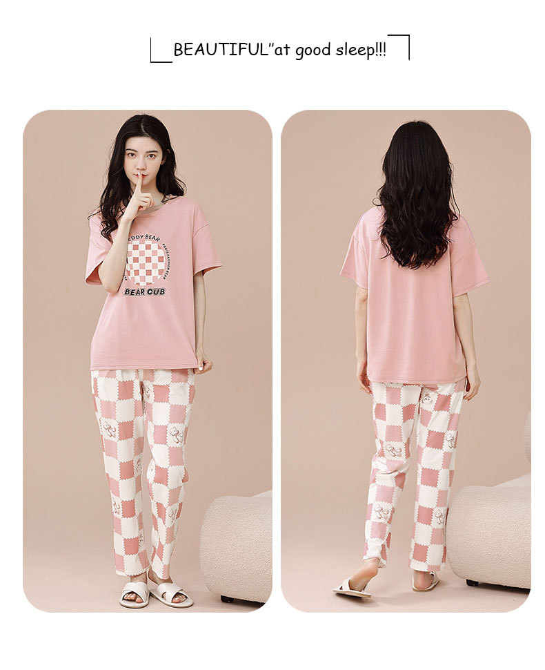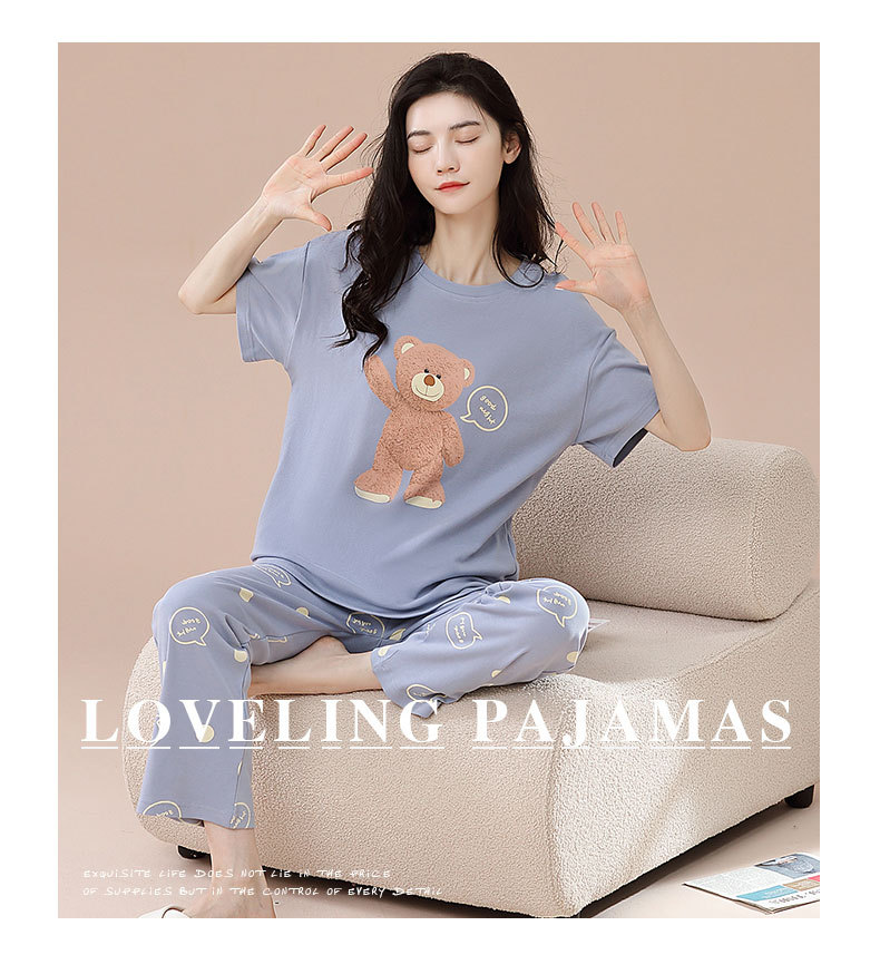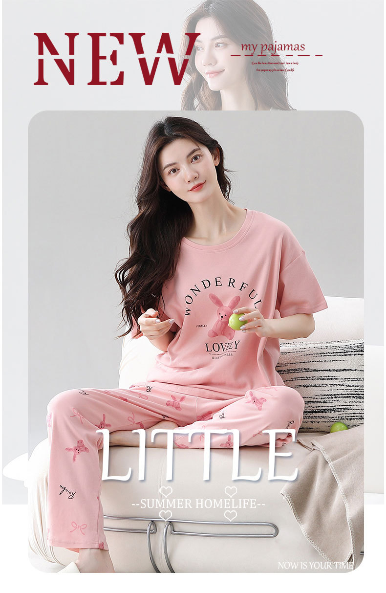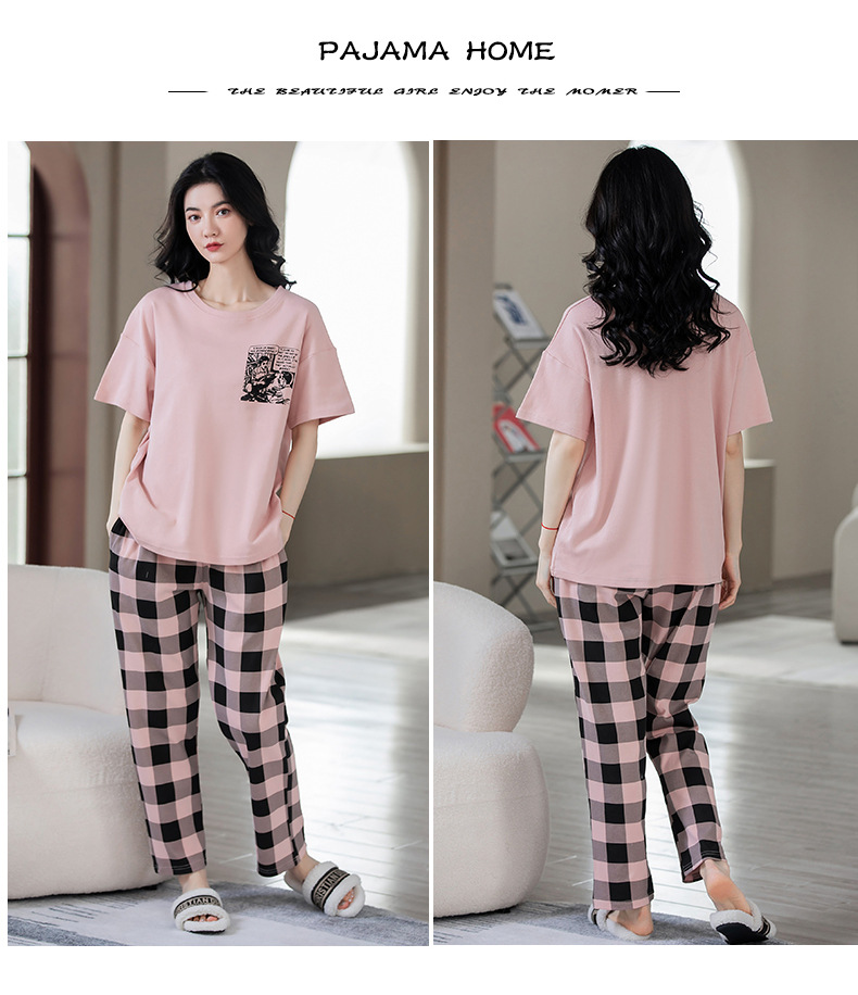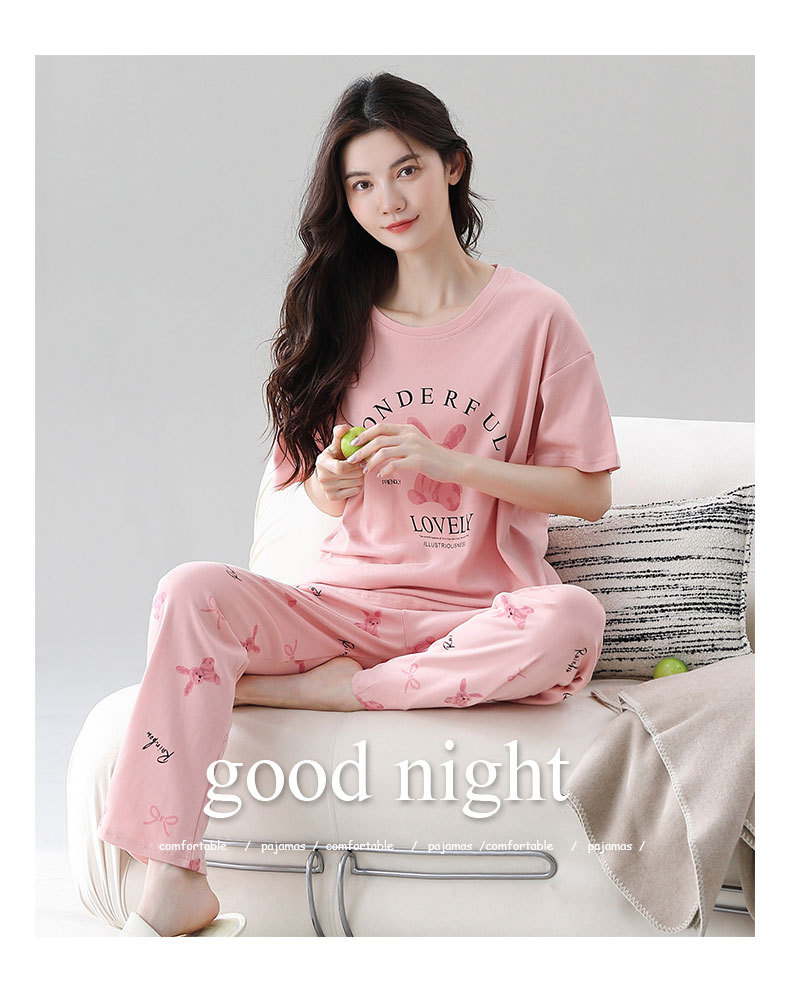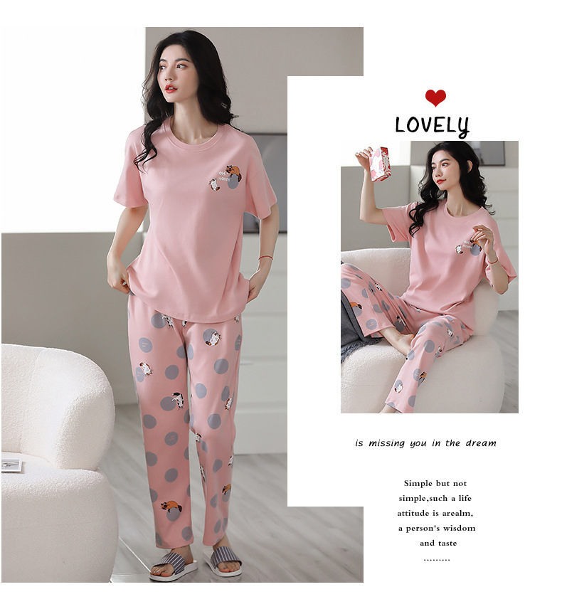 パジャマ女春夏純綿半袖ズボン2点セット