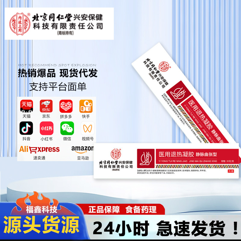 北京銅仁堂内廷は、精索の青い静脈の隆起やミミズの脚のための医療用静脈瘤冷湿布ジェルを使用しています。