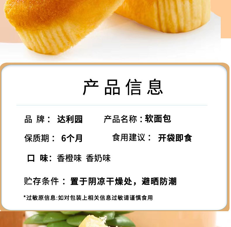 ダリ園フランスソフトパン袋入り香橙香ミルク味午後茶朝食菓子スーパー食品間食卸売り