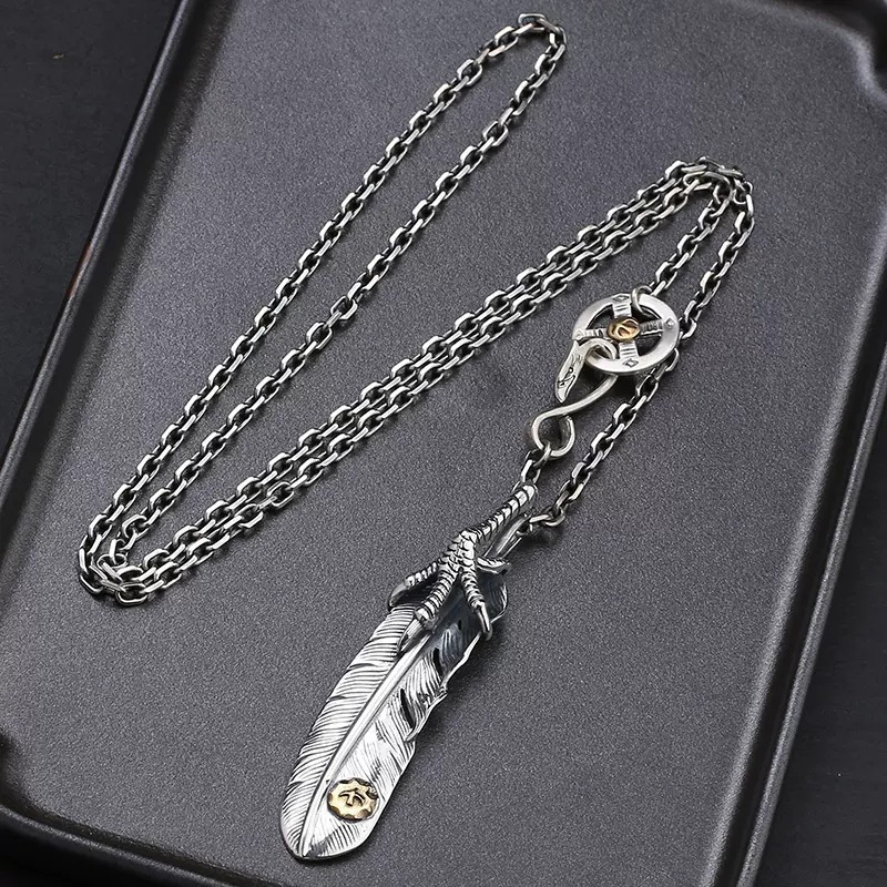 S925銀の高橋の羽のネックレスの男性の手作りの古いファッションのセーターの太角のチェーンの女性のスターの同じタイプの鷹の爪のペンダント