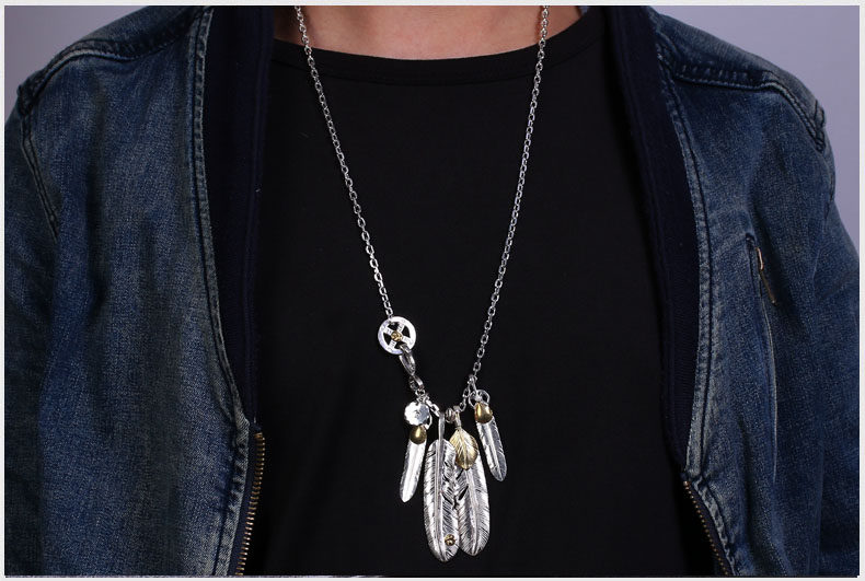 ヨーロッパとアメリカの手作りシルバージュエリートレンディなブランドネックレスイン男性と女性高橋五郎羽 925 インド人気ファッションカップル