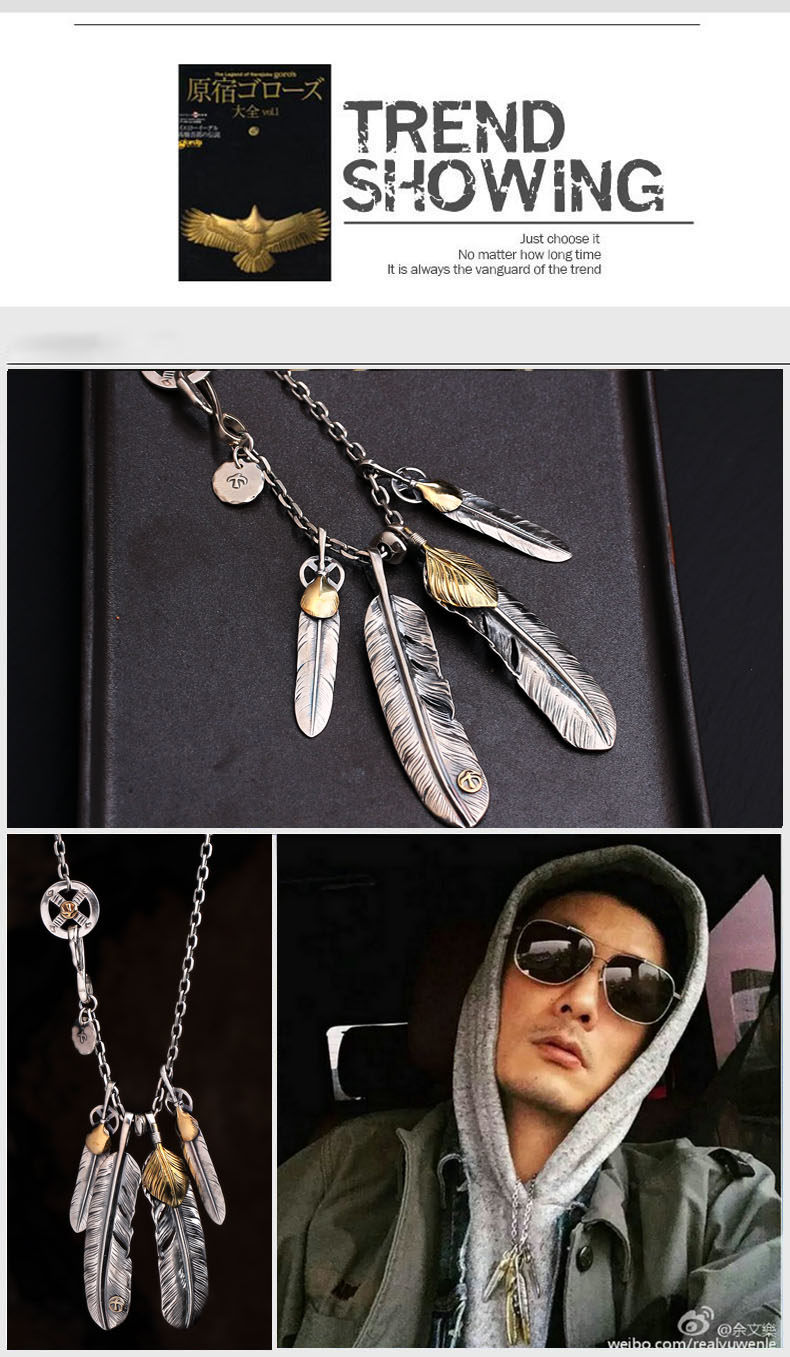 信琴のアクセサリの925銀の羽のネックレスの男性の潮のブランドの復古のヒップホップカップルのタイプの個性の百合の銀のペンダント
