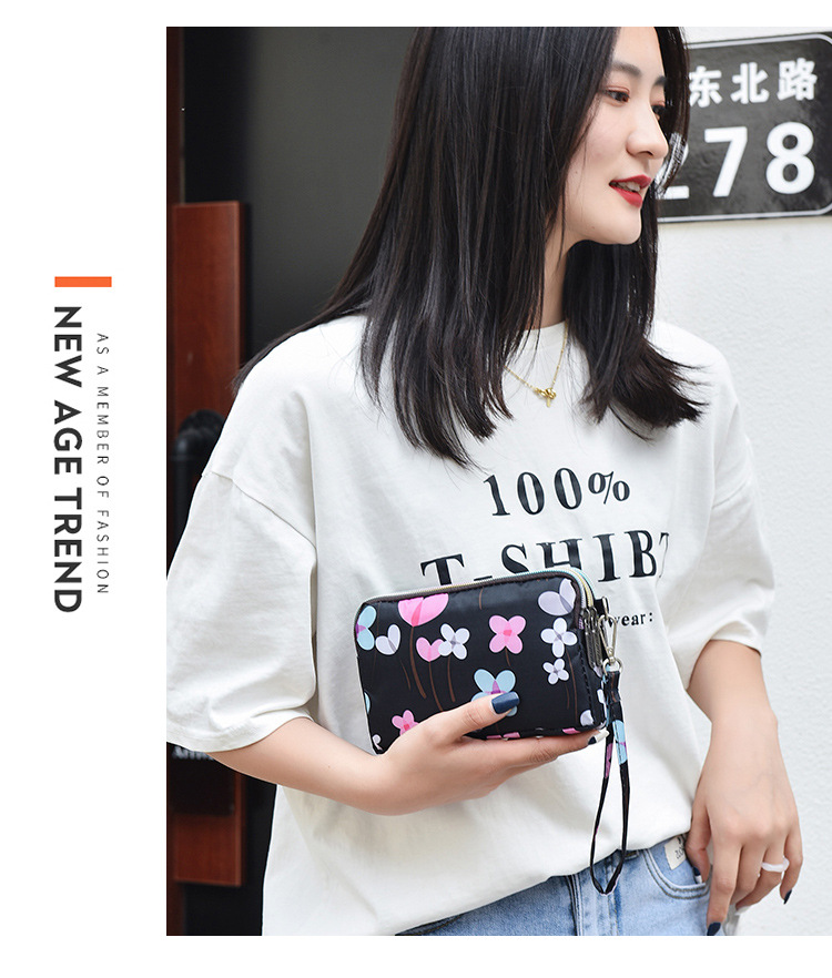 女性の新型韓国版防水手持ち三ファスナー携帯電話バッグシンプルで可愛いファッションアニメ小銭入れ布芸