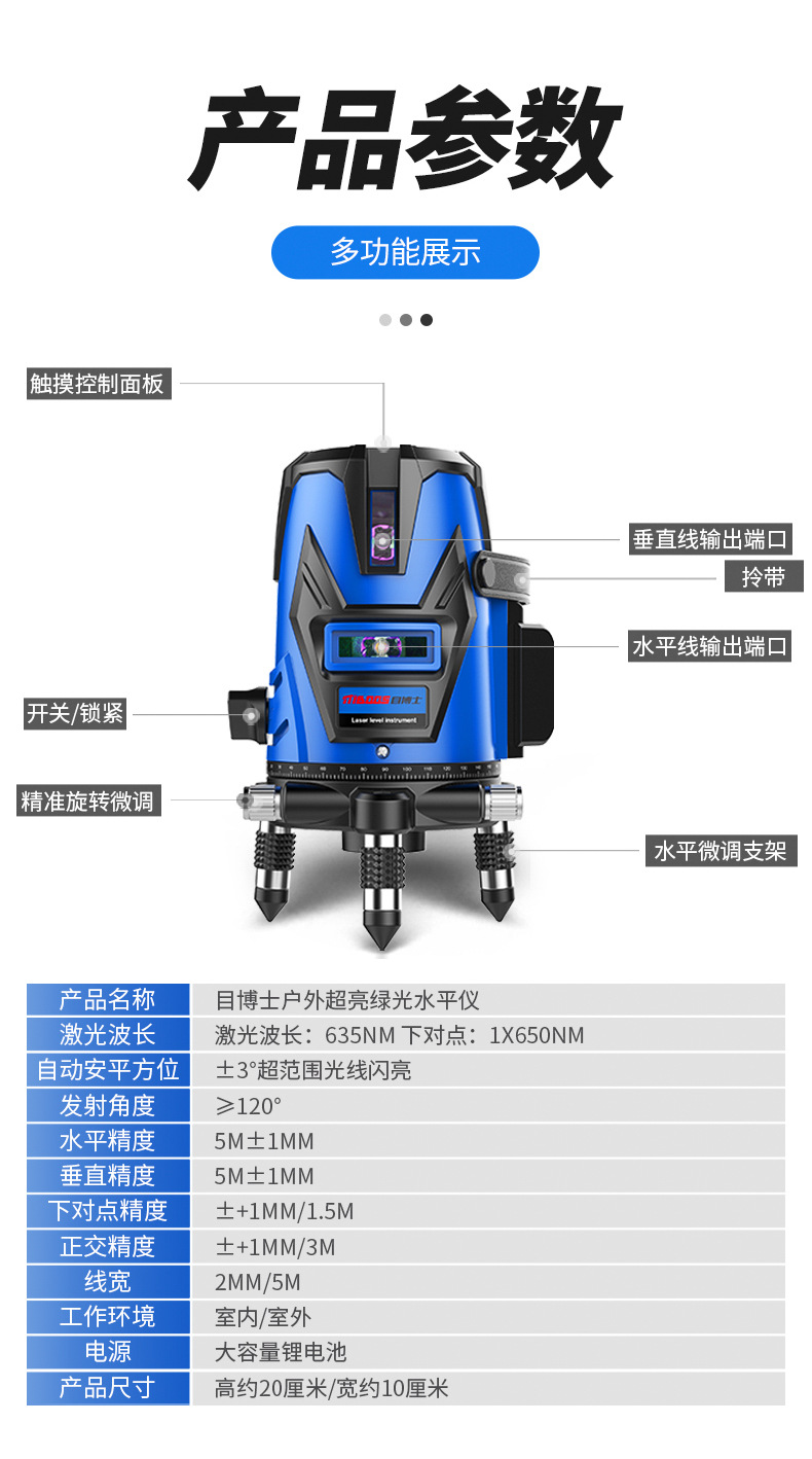 激光水平仪强光高精度绿光12线自动安平16红外线目博士水准仪厂家