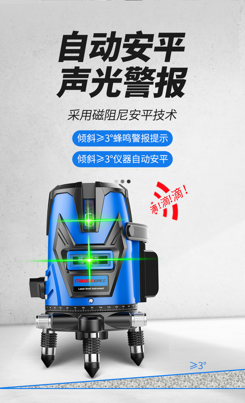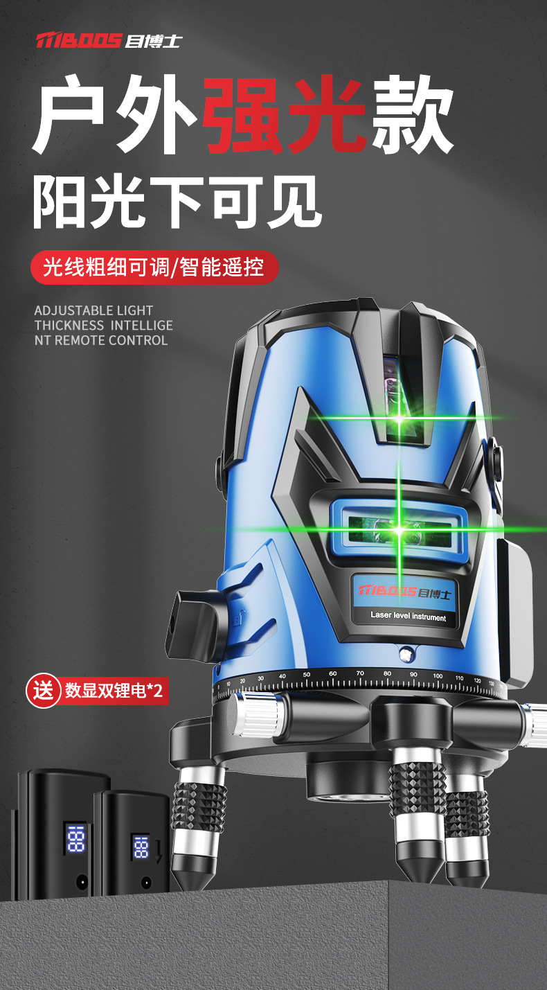レーザー赤外線水準器高精度強光細線緑光ブルーレイ2線5線屋外自動調平水器