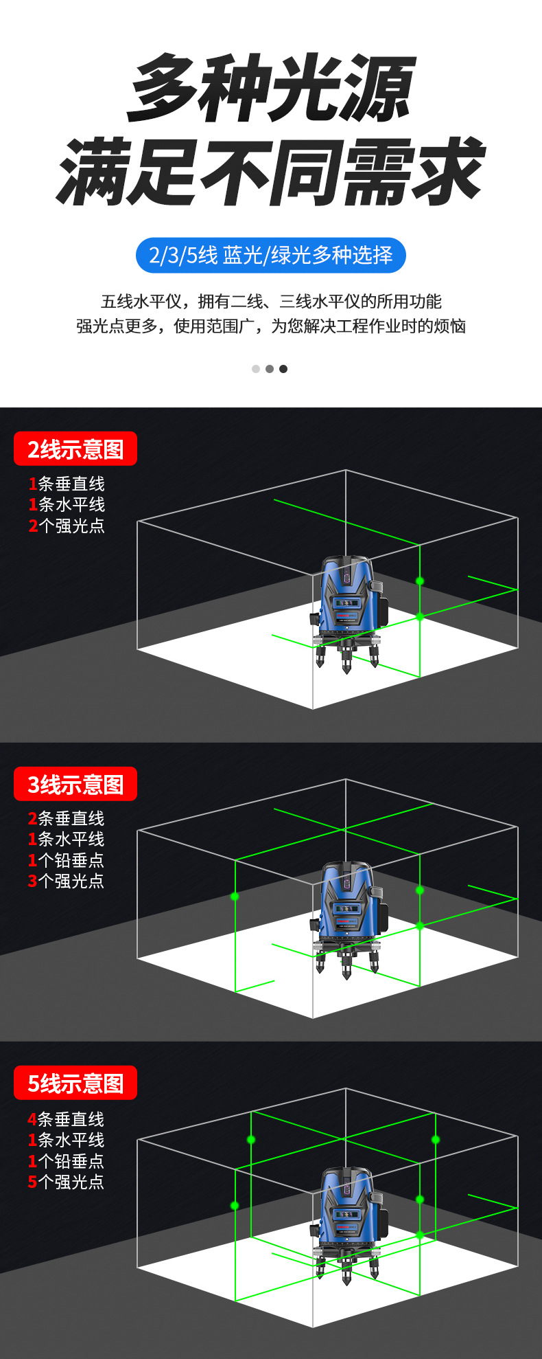 メーカー卸売り戸外水準器自動レベリング打線緑光水準器2/3/5線高精度投線器