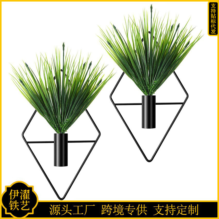 鉄芸の壁の装飾のダイヤモンドの幾何学の花棚の壁掛け式のシミュレーションの緑の造花の吊り下げの花棚のインテリア