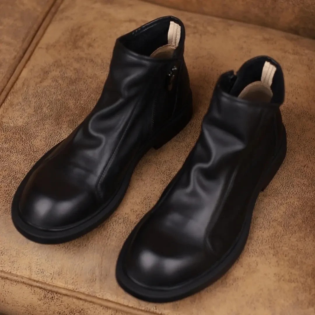 メンズシューズ 新作 秋冬 メンズ 本革 ラウンドトゥ フラット感 レザーブーツ イギリス風 多用途 ショートブーツ ジッパー付き マーティンブーツ
