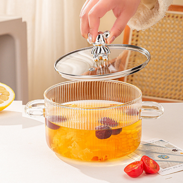 高硼硅小熊电煮锅 可明火直烧玻璃锅耐高温透明双耳炖锅煲汤家用
