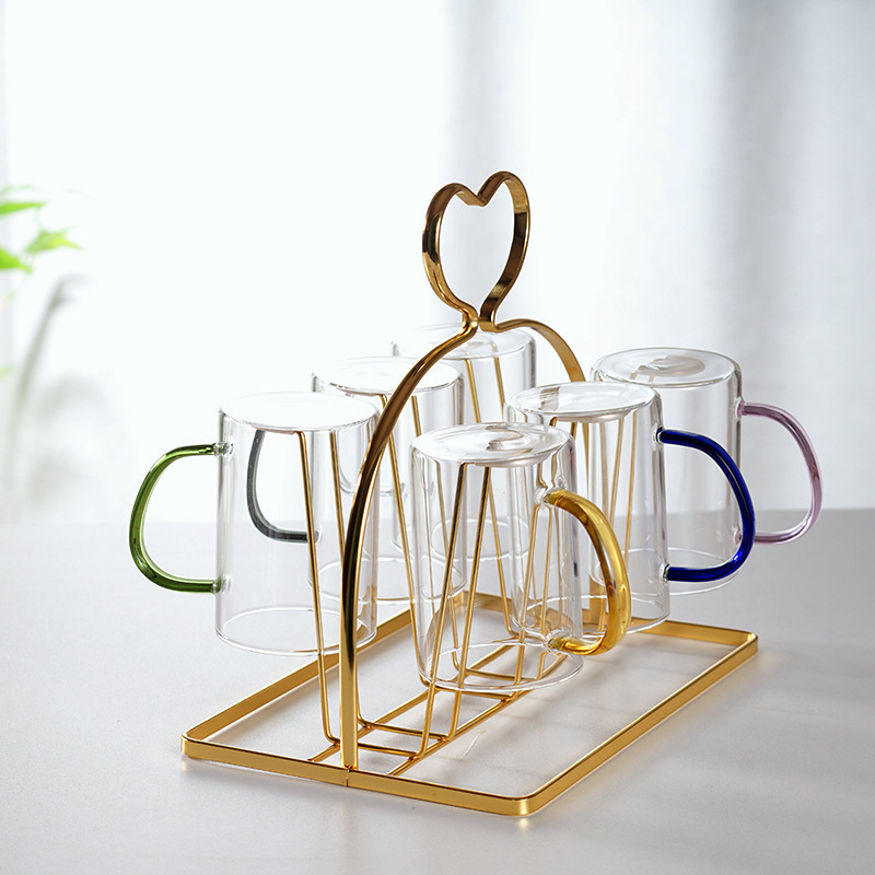 现货高硼硅玻璃杯带把手 水杯玻璃杯家用加厚六色泡茶杯家用待客