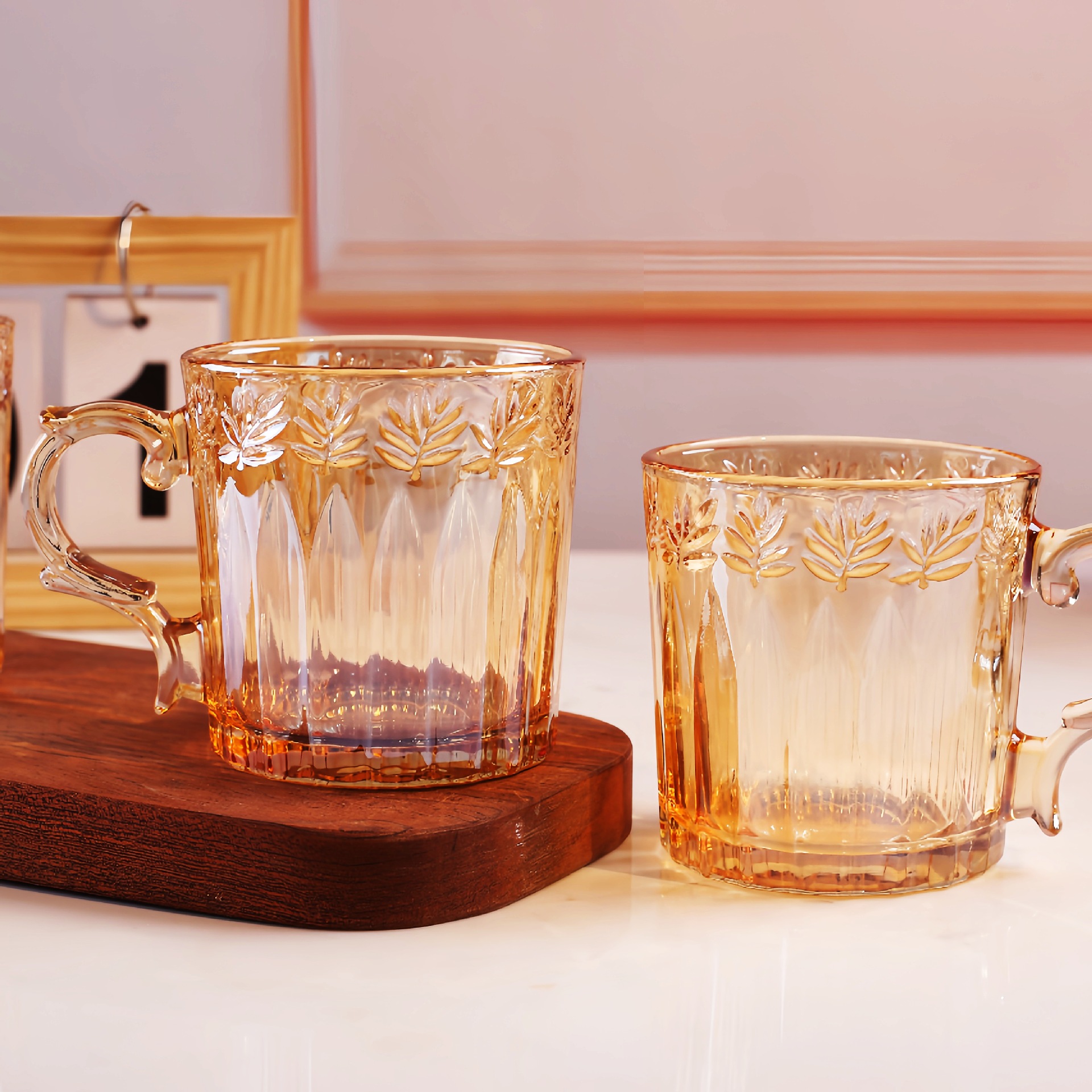 简约马克杯玻璃杯高级感 高颜值咖啡杯带把手浮雕水杯伴手礼年会