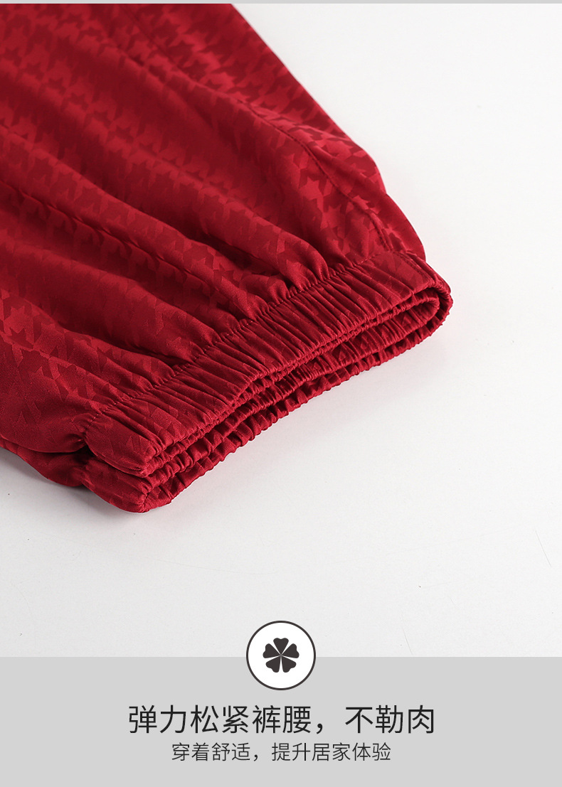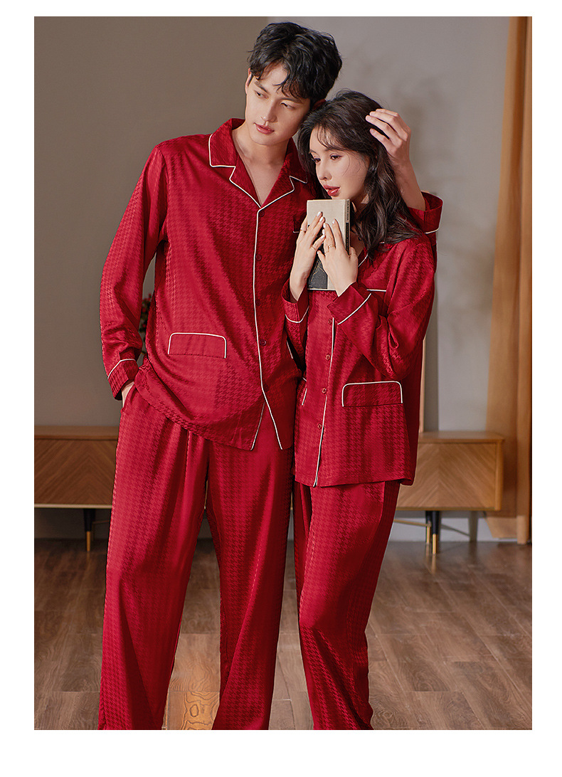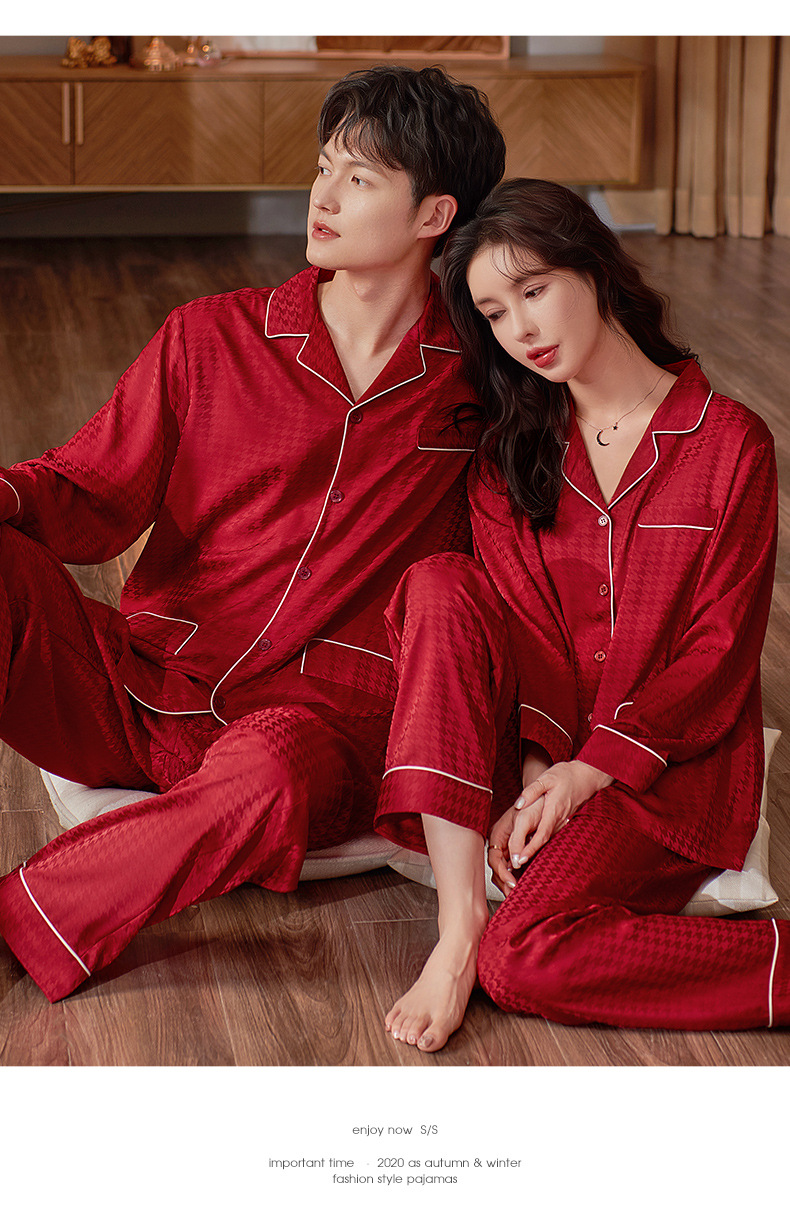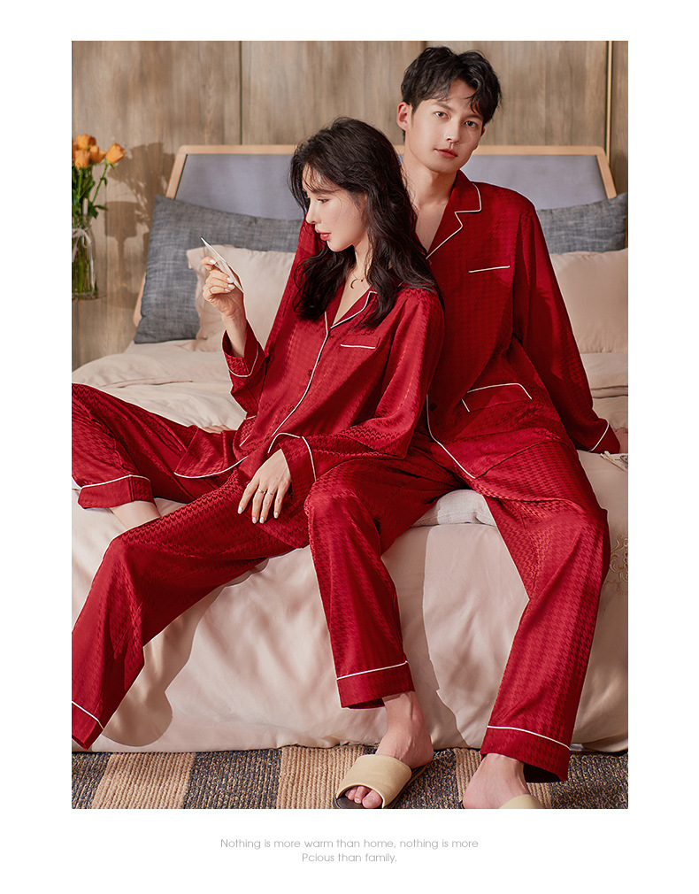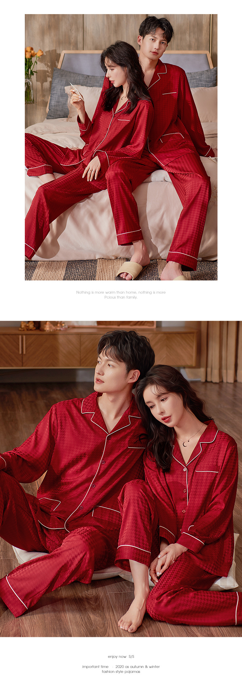 軒の美しい春と秋のカップルのパジャマの本命年の結婚祝いの赤いパジャマの襟のカーディガンは家の服を着ることができます。
