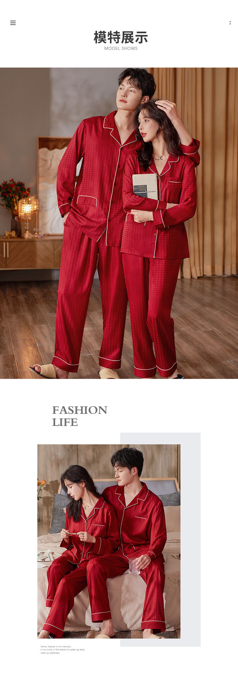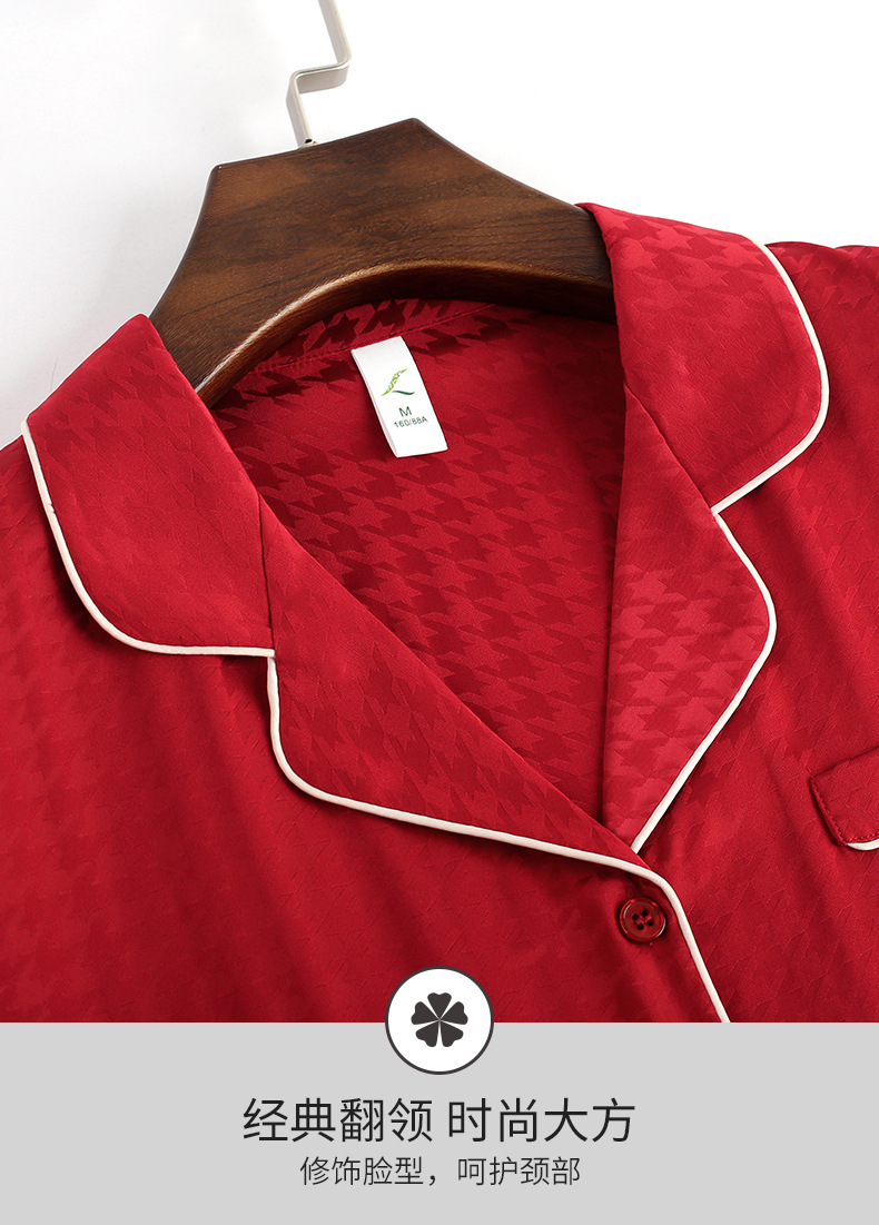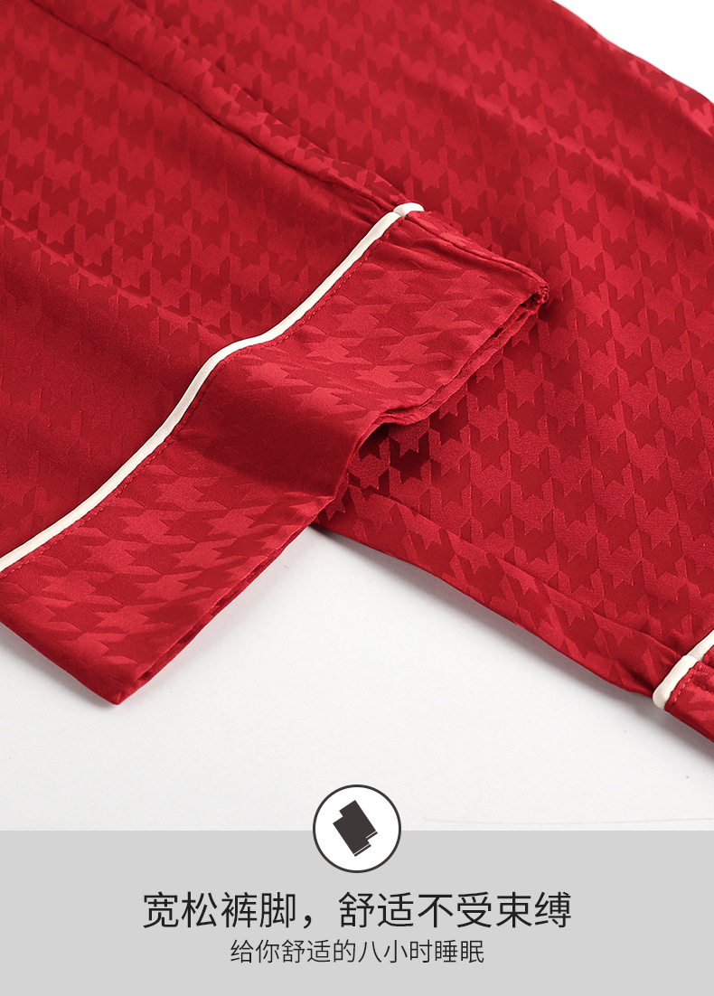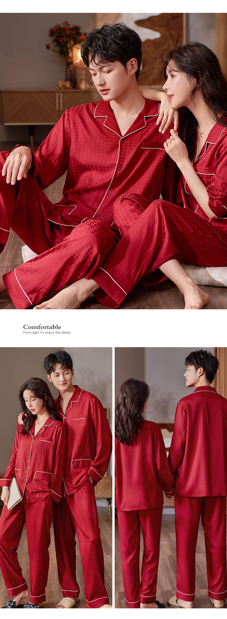 軒の美しい春と秋のカップルのパジャマの本命年の結婚祝いの赤いパジャマの襟のカーディガンは家の服を着ることができます。