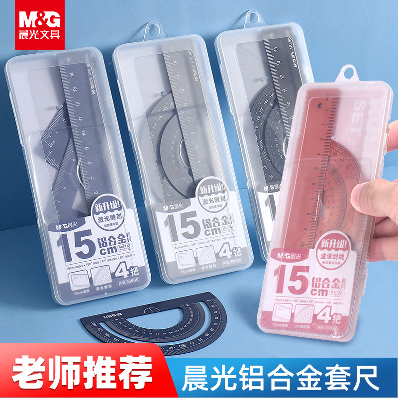 朝光金属物差しアルミニウム合金四点セット小学生専用試験直尺波定規測定器三角板