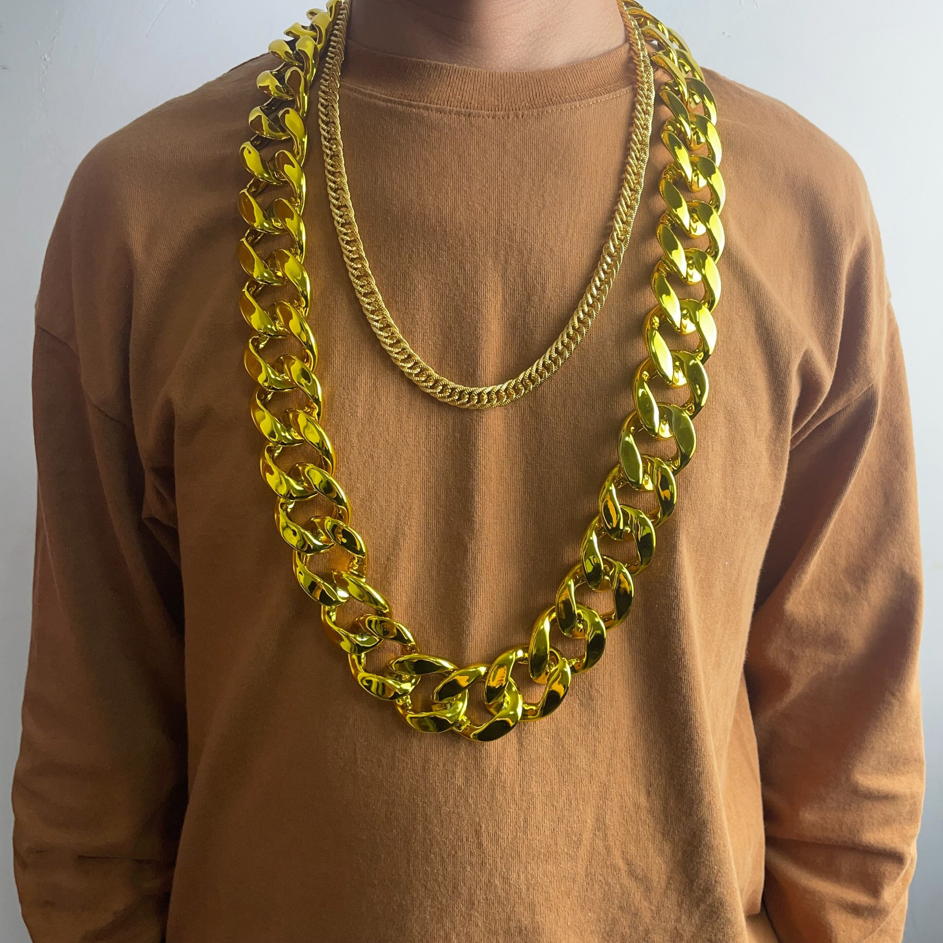 インターネット有名人ヒップホップ誇張金メッキ大型ゴールドチェーン超厚いプラスチックネックレスライブブロードキャスト小道具パフォーマンスアクセサリー