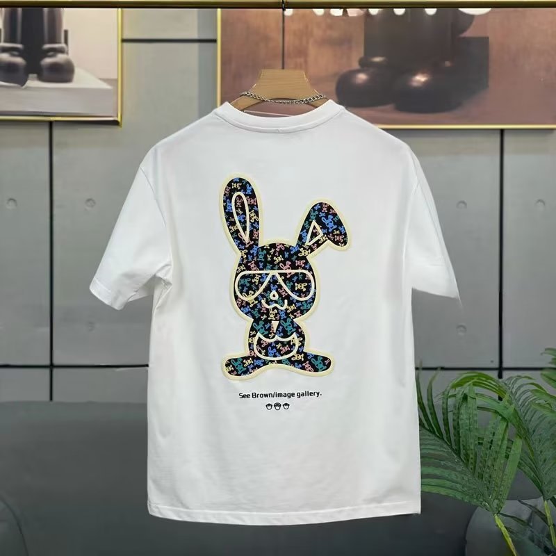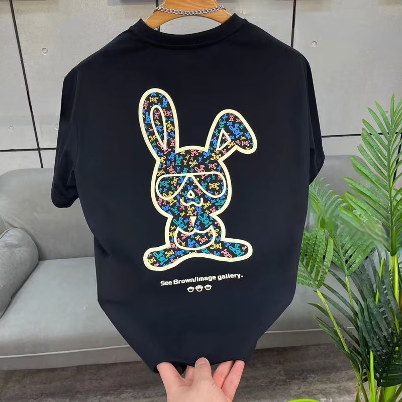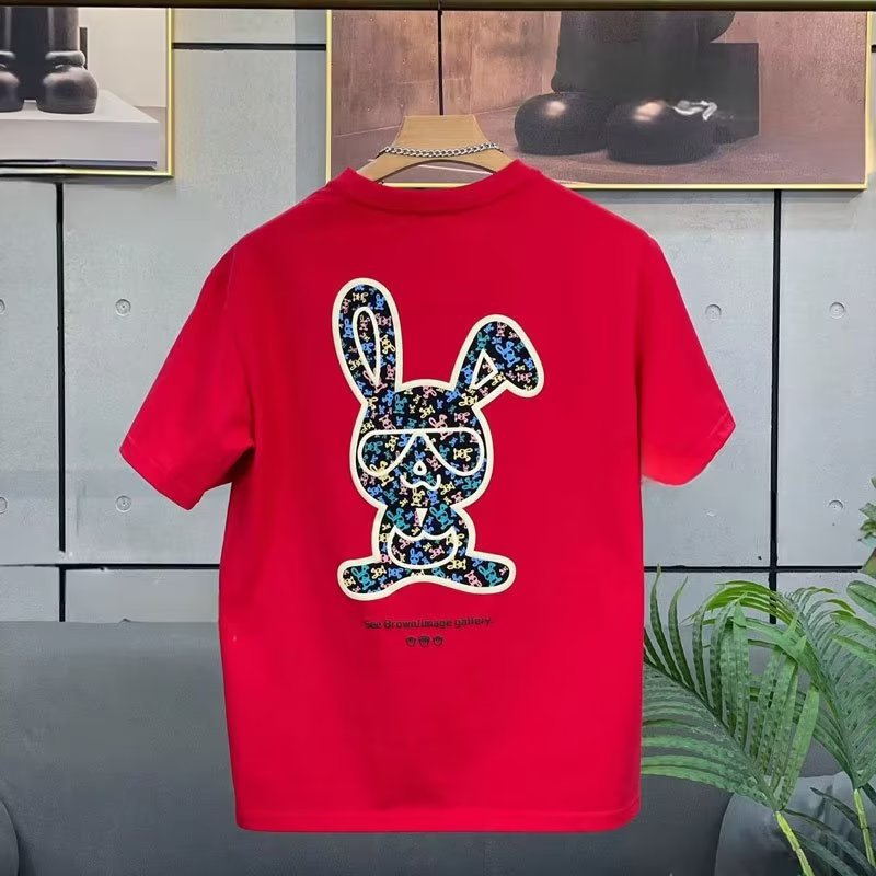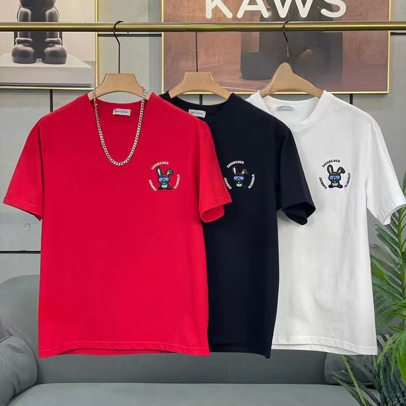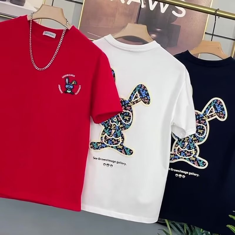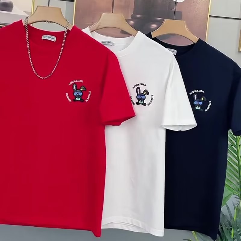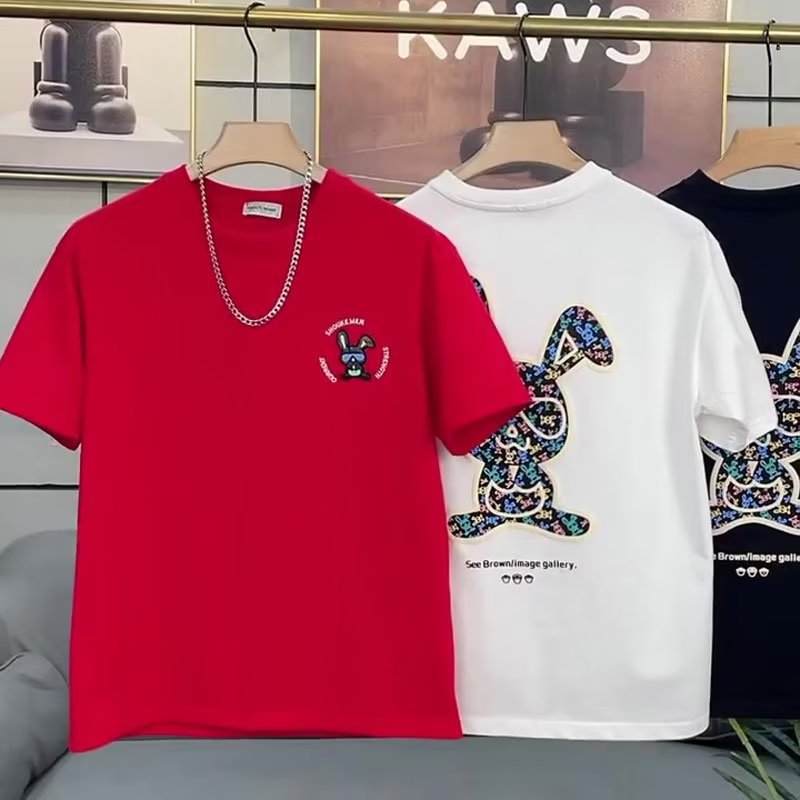 ファッションブランドの新しい男性のウサギのプリントの半袖の赤いファッションはtシャツの漫画の個性の丸首の半袖の上着を修理します。