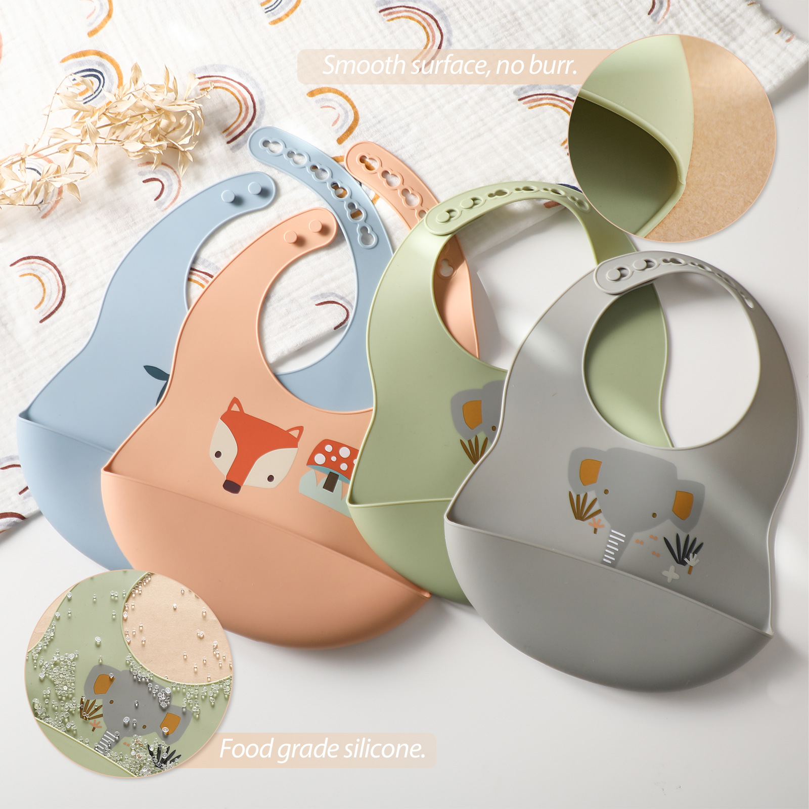 新款宝宝吃饭围兜防水超软轻薄儿童辅食饭兜口水兜食品级硅胶围嘴