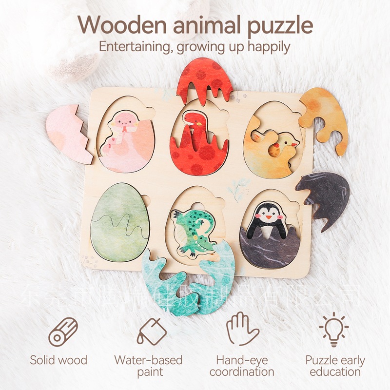 蒙氏早教児童木製アマゾン対外貿易認知動物卵殻ペアパズル板児童手玩具