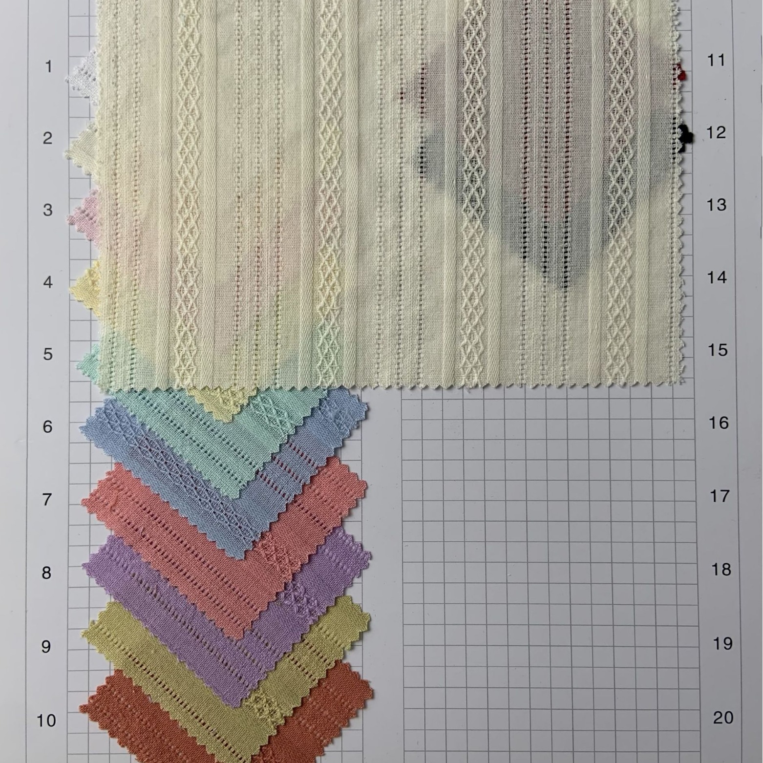 通気性の全綿の双菱の透かし彫りの条のジャカードのガーゼのロリータ風の婦人服のシャツのワンピースのスーツの生地