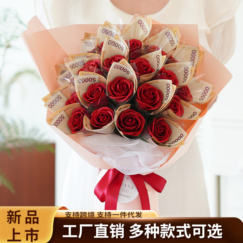 网红款七夕情人节母亲节有钱花花束成品香皂花仿真花玫瑰花束香氛