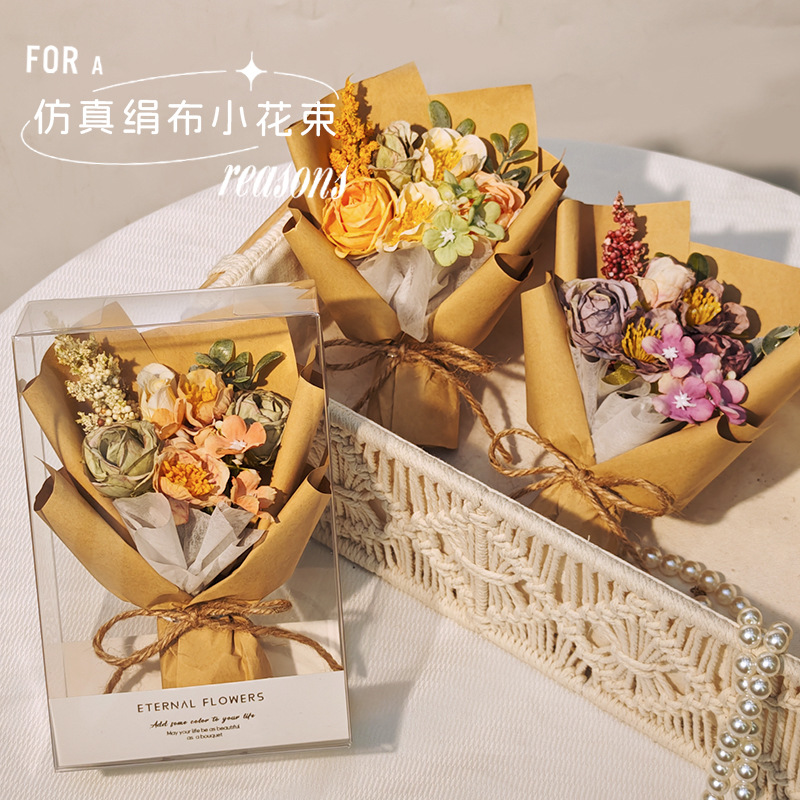 ミニ花束模造花絹布花pvc礼箱包装薔薇誕生日プレゼント造花卸売り対外貿易輸出