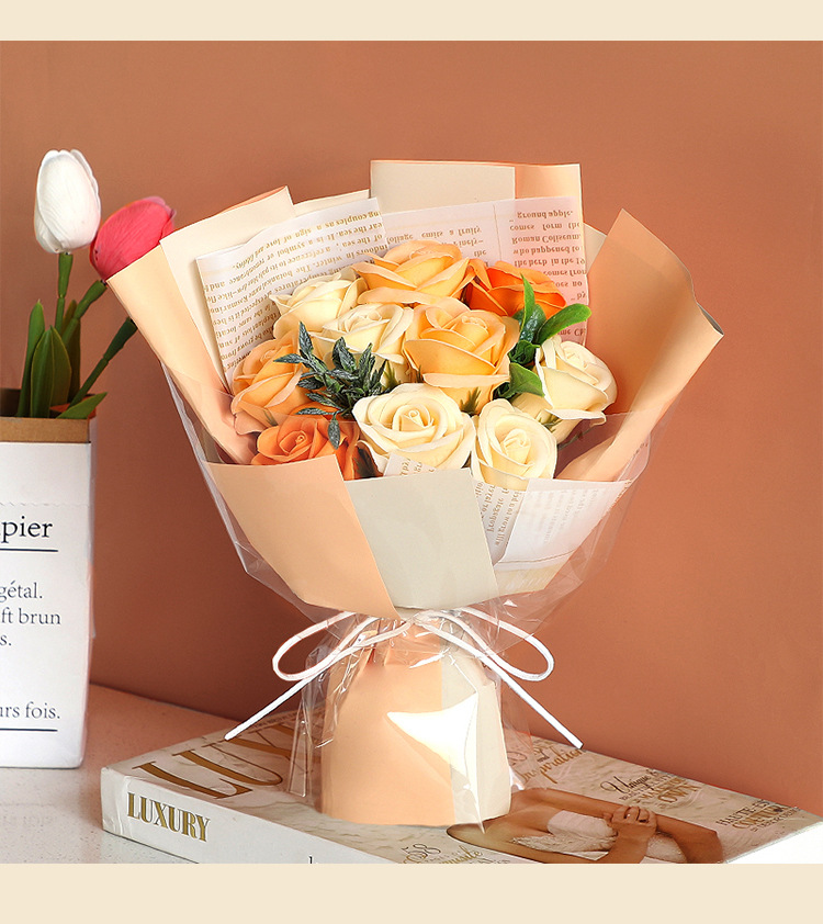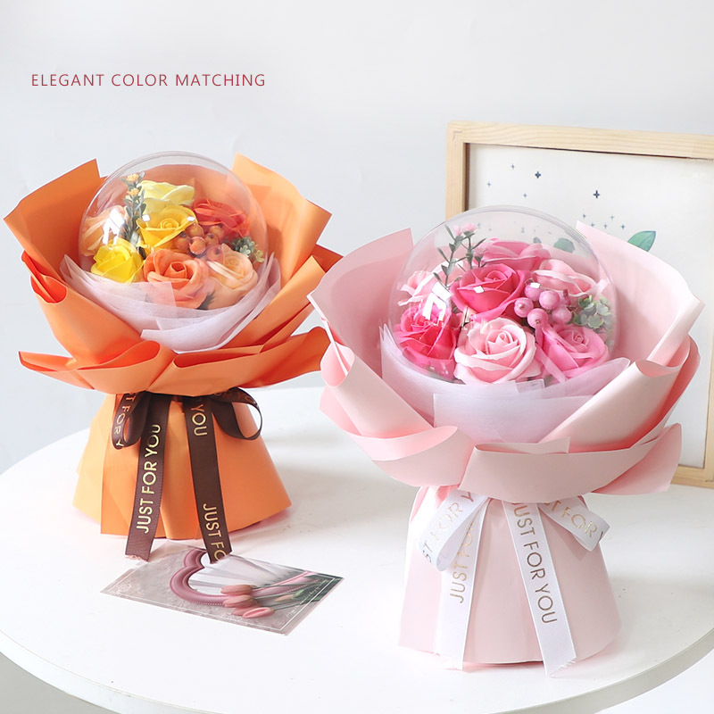 模擬花、バラ、バレンタインデーの花束、ソープフラワーブーケ、完成した包装、ソープフラワー、女の子の誕生日プレゼント