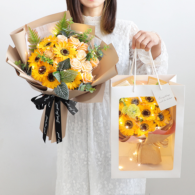 ひまわりの花束、造花、永遠のバラ、石鹸の花、誕生日プレゼント、卒業シーズン、教師の日、バレンタインデー、ドライフラワー