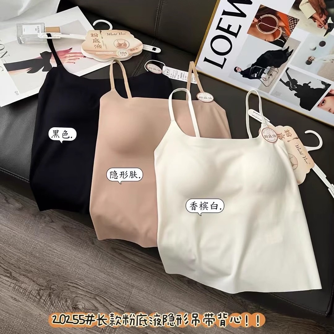 20255 シームレスリキッドファンデーション アイスシルク ヌード感 インビジブルキャミソール レディース 胸パッド付き スリムフィット 多用途 美背中ベース