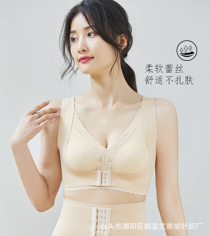 無痕下着の女性が集まって、胸の中に薄いベストをつけて、底付きのストラップを着て、夏のブラジャーを身につけます。