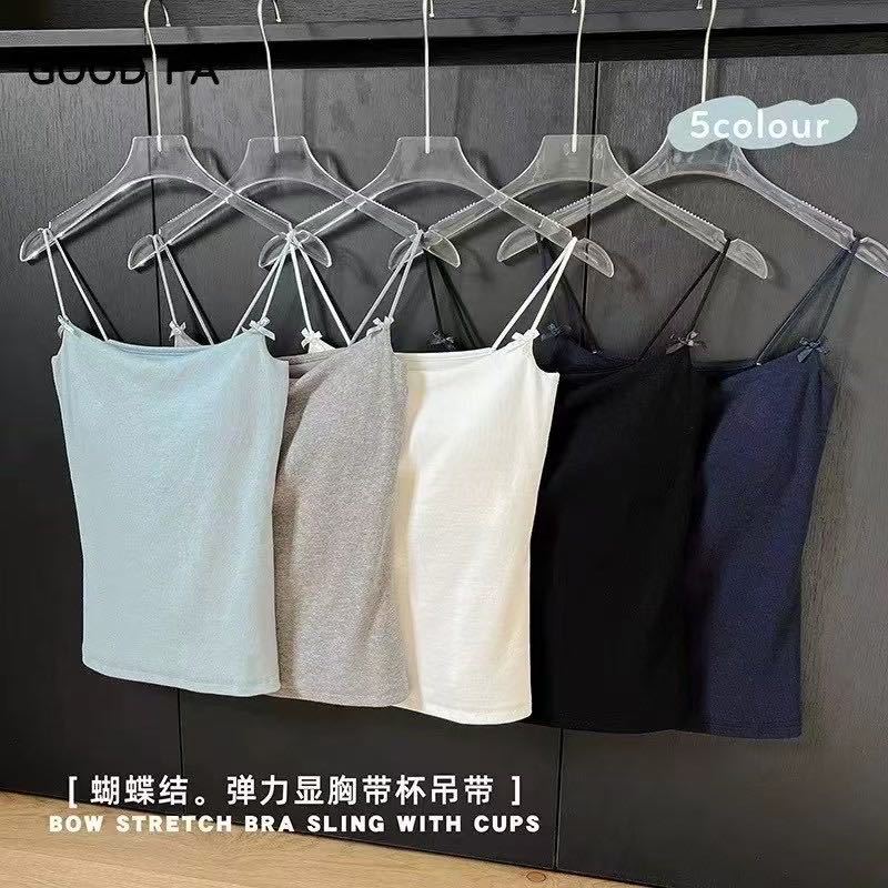 韓国風リボンスパゲッティストラップキャミソールレディース糸弾性バンド胸パッド一体型インナートップ 25203FA