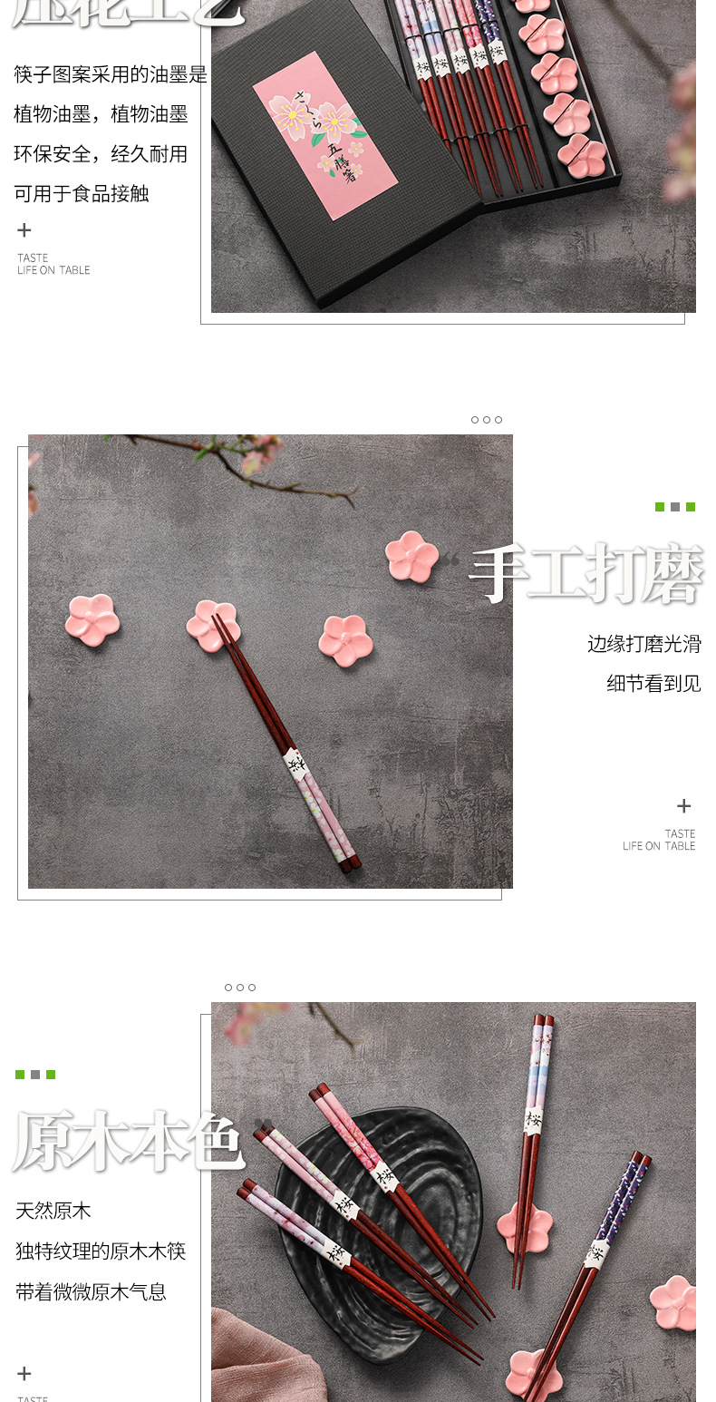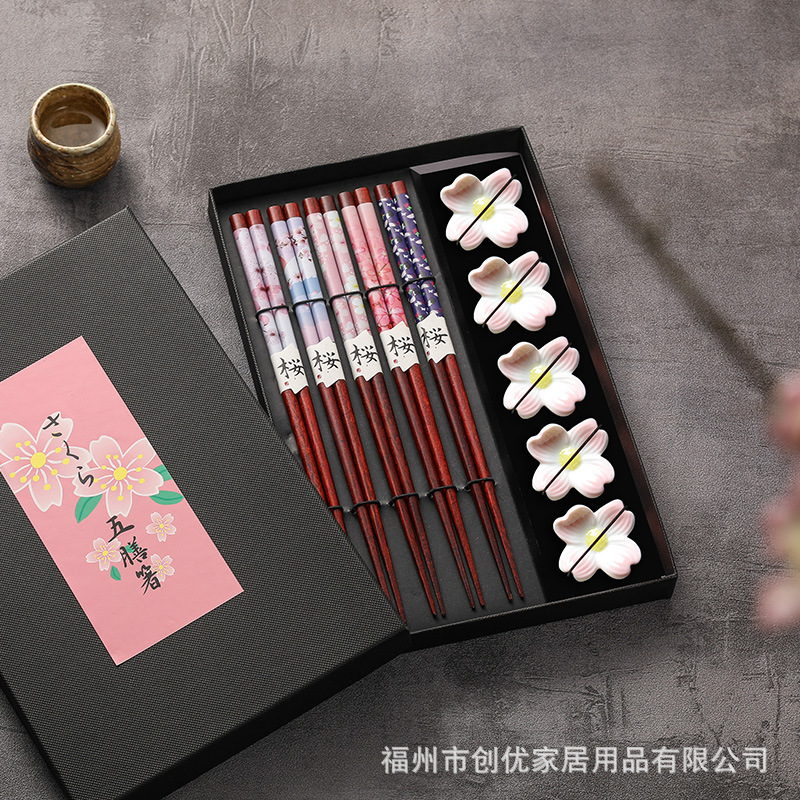 陶磁桜箸置き家庭用高颜値食器セット五足入れ熱転写花一人箸お土産