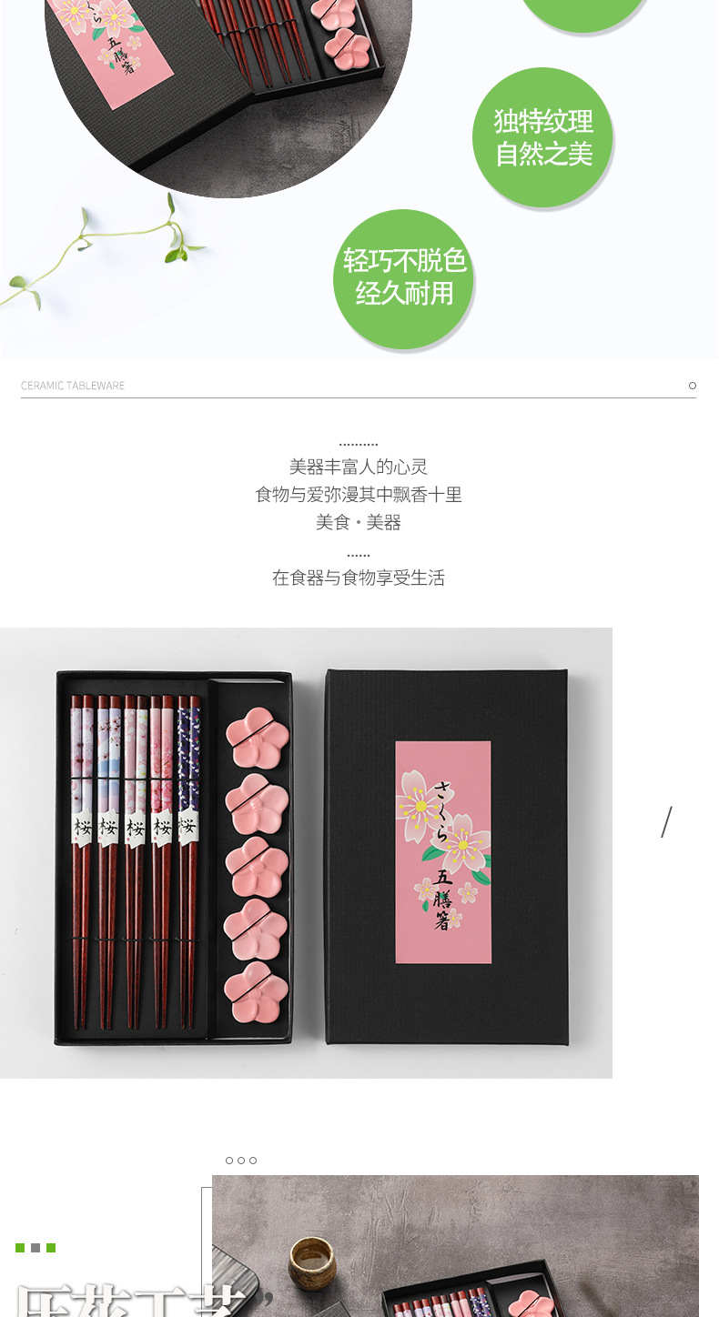 日本の桜箸ギフトボックスセラミック箸ホルダー5組箱入りギフト箸家庭用高価値高級食器コンパニオン