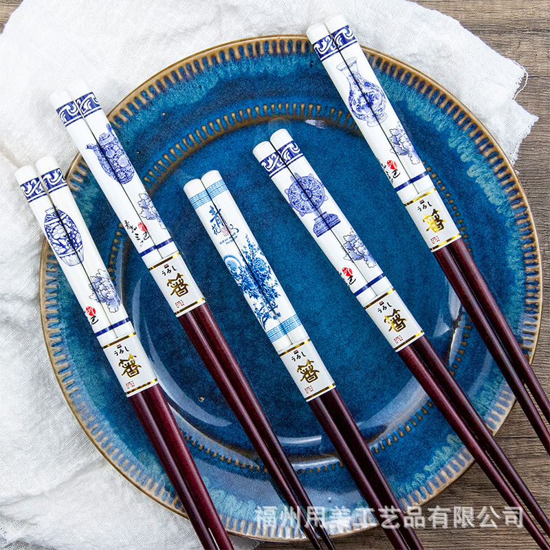 青と白の磁器箸 5 組の中国風食器セット家庭用食事シェア 1 人 1 本の箸模造セラミック工芸箸ハイエンド