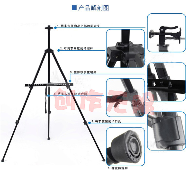 易秀三角画架结构合理、美观、调节灵活、使用稳定、携带轻便等特点。 特别是采用万向橡胶脚套,具有多方位任意定位之特点,保证任何地形创作时稳定、不打滑。