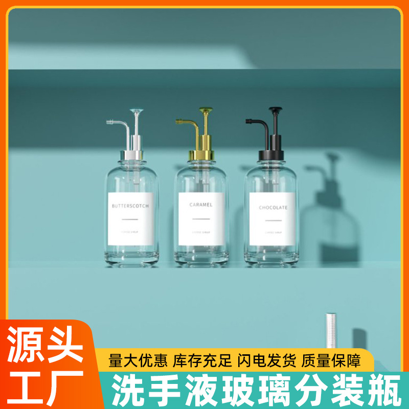 热销亚马逊晶白料500ml玻璃乳液瓶皂液洗手液瓶咖啡糖浆分装瓶子
