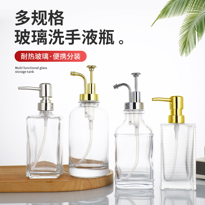 洗手液玻璃分装瓶子轻奢透明洗手液瓶沐浴露洗发水按压瓶酒店民宿