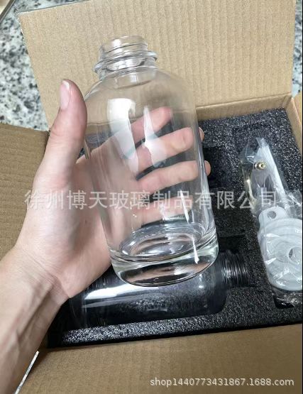 亚马逊跨境按压式分装瓶透明玻璃空瓶浴室卫生间沐浴露化妆品瓶子