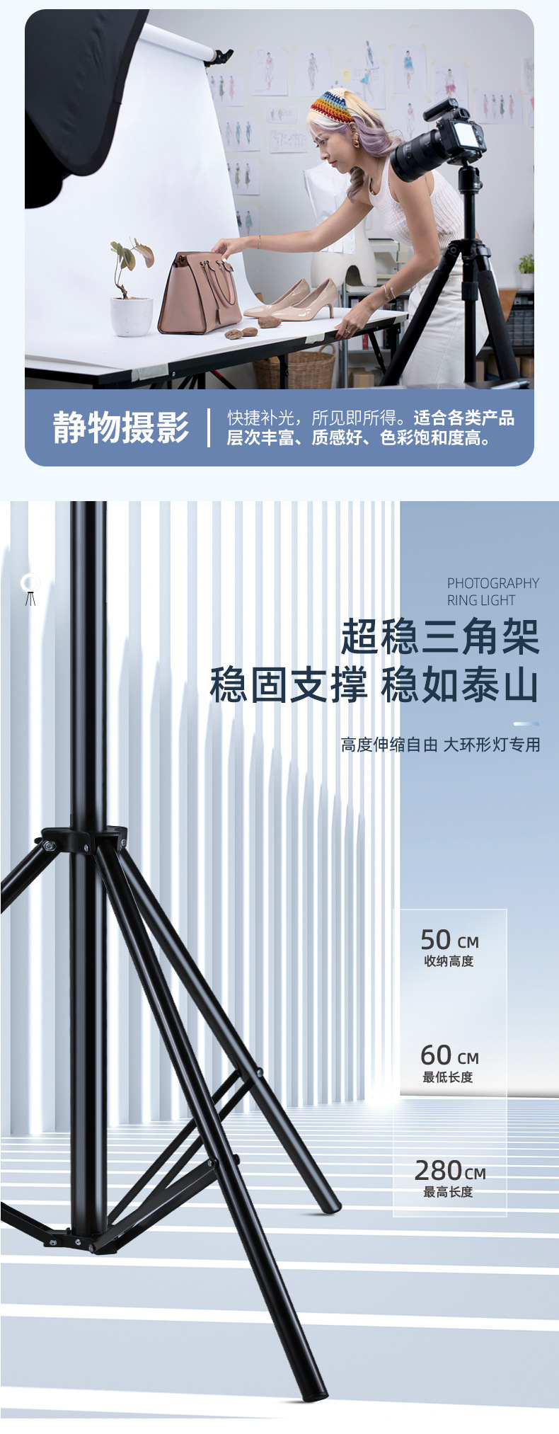 2.8m ライブ撮影用ライトスタンド フラッシュライト ソフトボックス 映画撮影用ライト 三脚 室内配信者用補助光スタンド