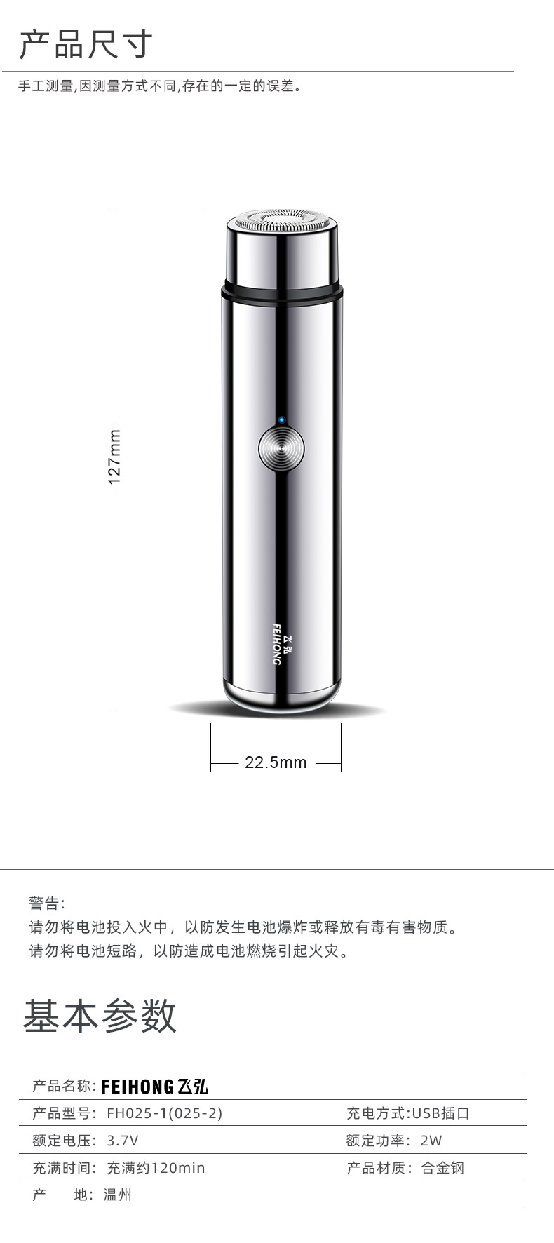 新品飛弘025-2ポータブルミニ電気シェーバーメタルusb充電シェーバーメンズシェーバー