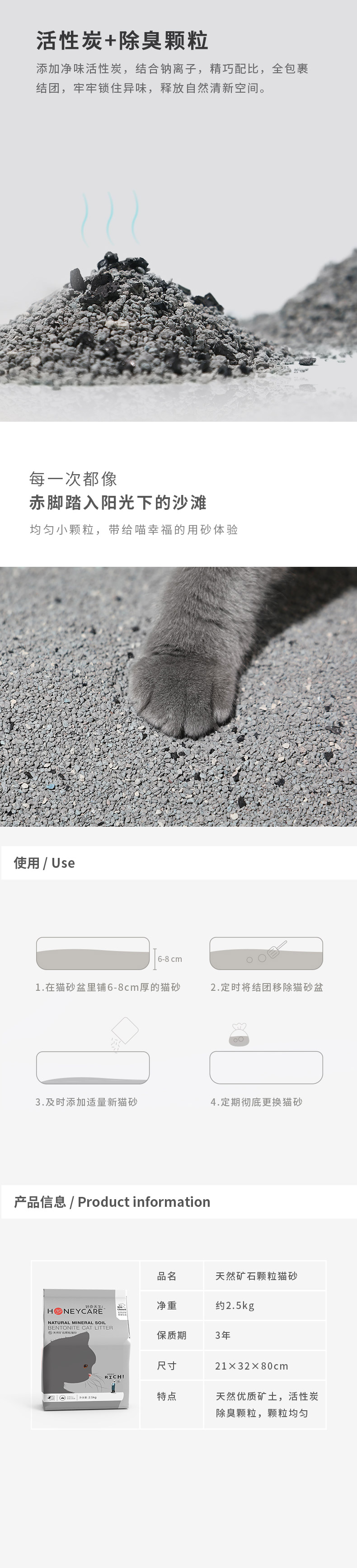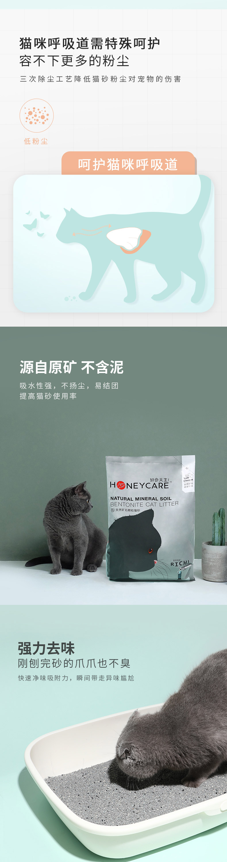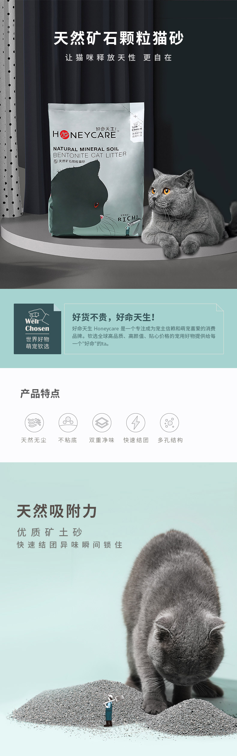 好命天生猫砂低粉塵結団Honeycare鉱石顆粒活性炭ベントナイト混合猫砂