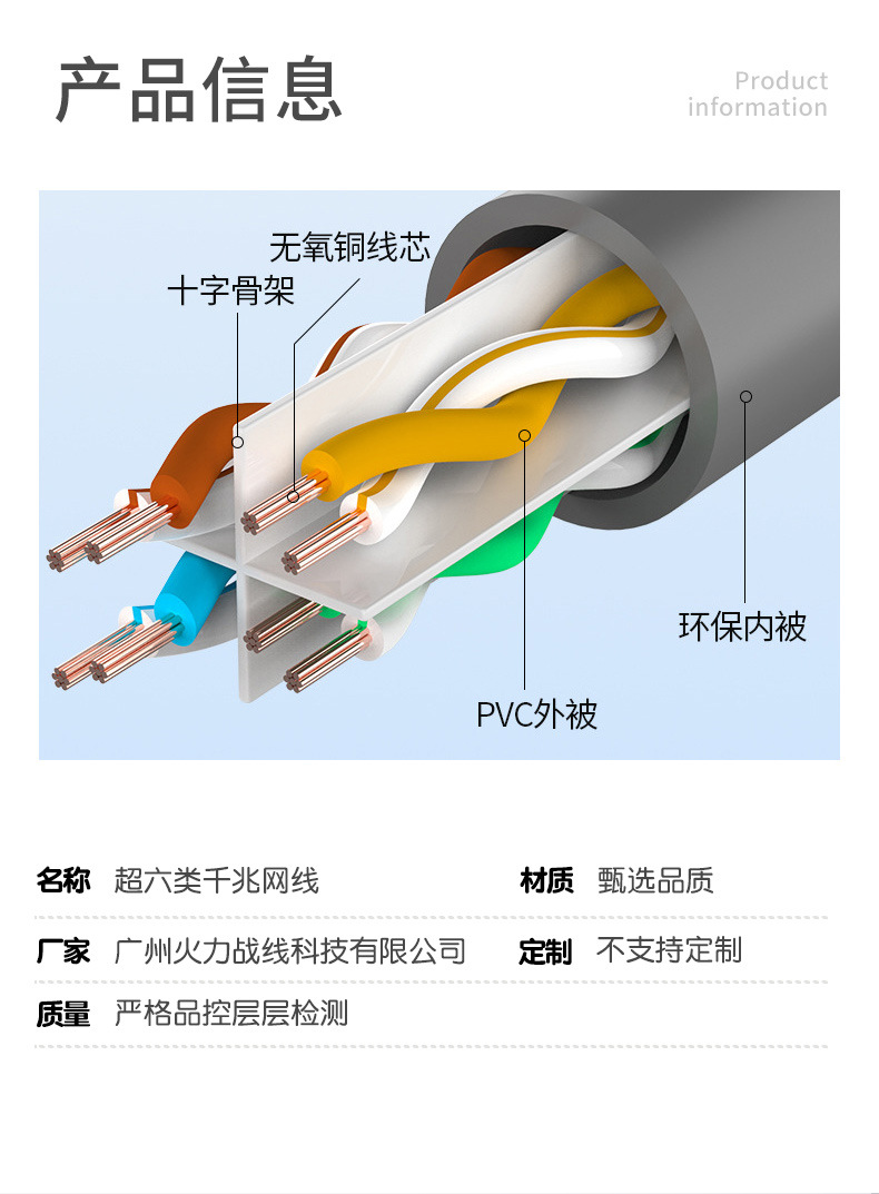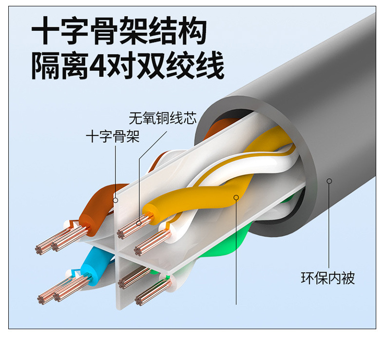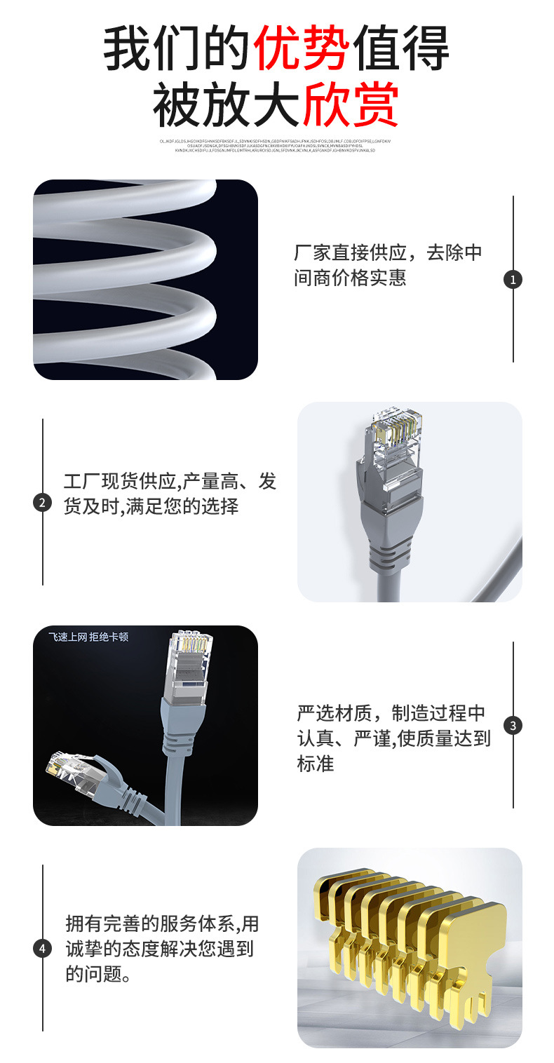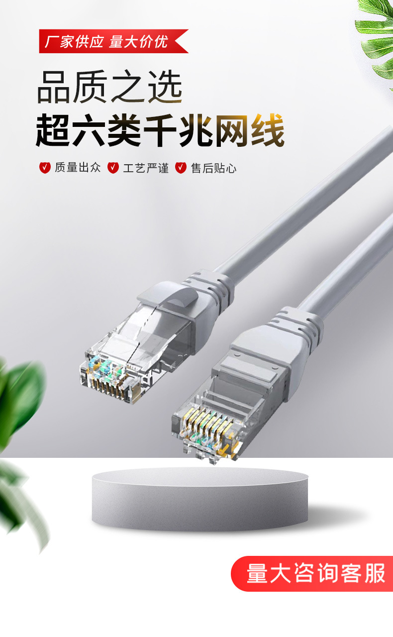 飛尼爾ギガ六類のコンピュータのネットワークケーブルのツイストペアのブロードバンドのルータの8芯のネットの高速ジャンパー線は酸素がない銅です。