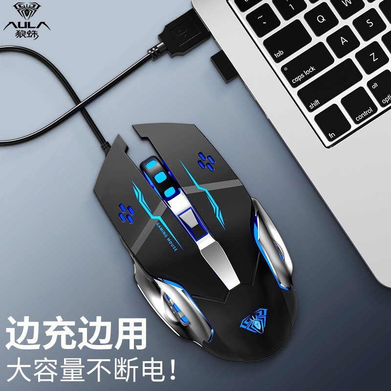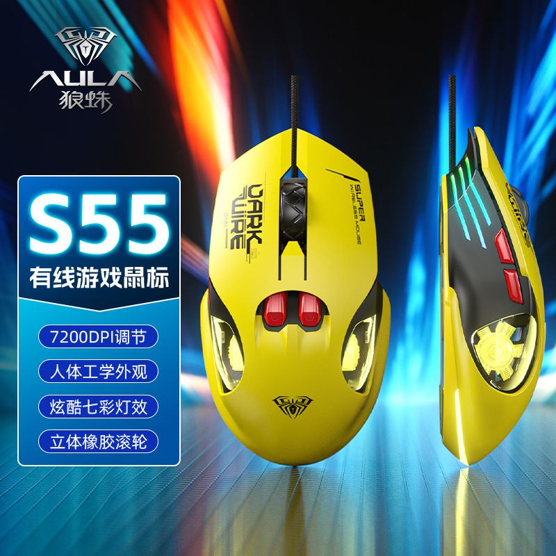 (AULA)狼蛛S55机甲风有线游戏电竞鼠标低音按键炫酷七彩呼吸灯效