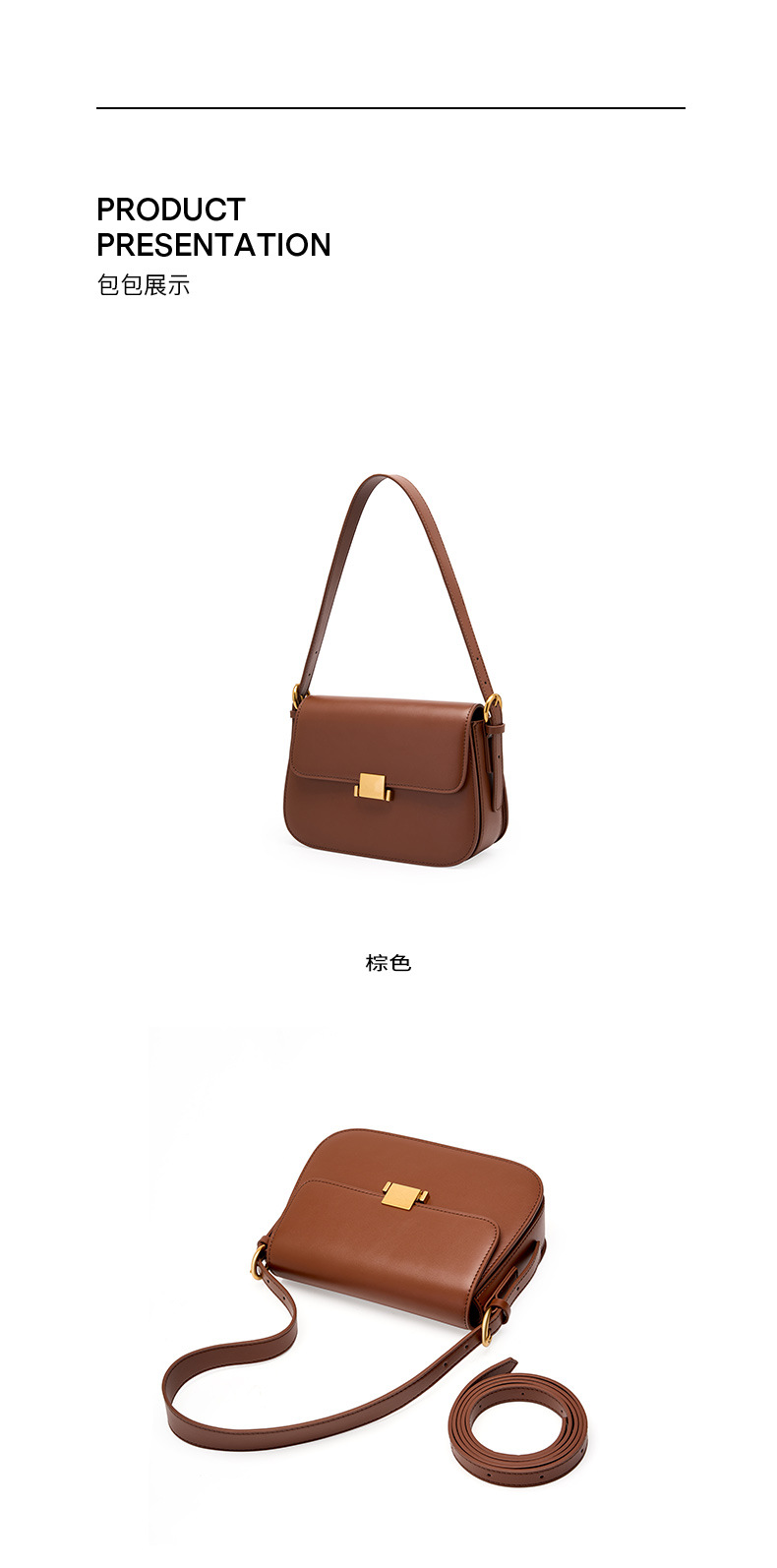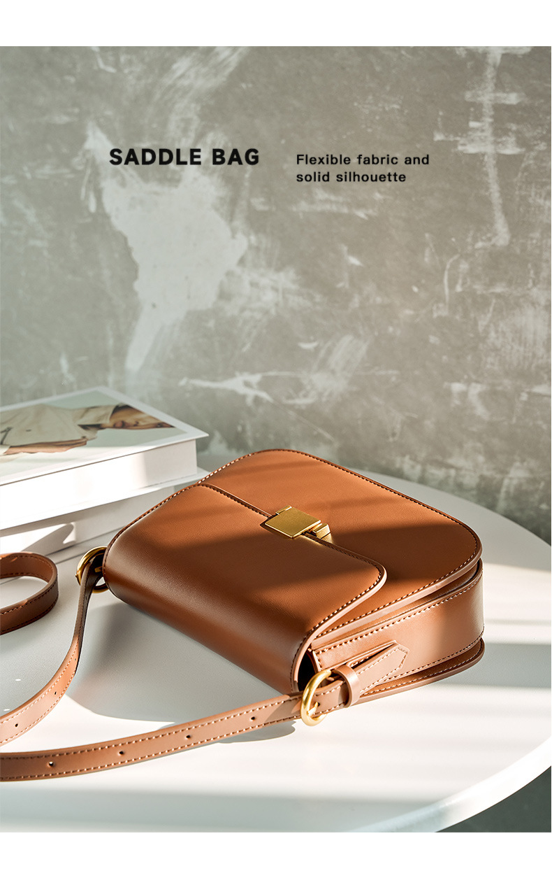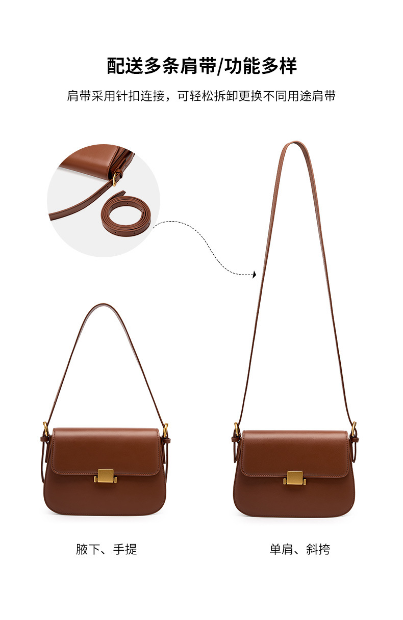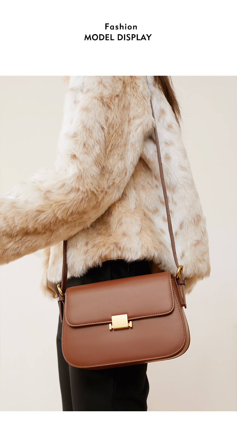 都市简约2025新款高颜值单肩斜挎包小众复古真皮时尚锁扣手提女包
