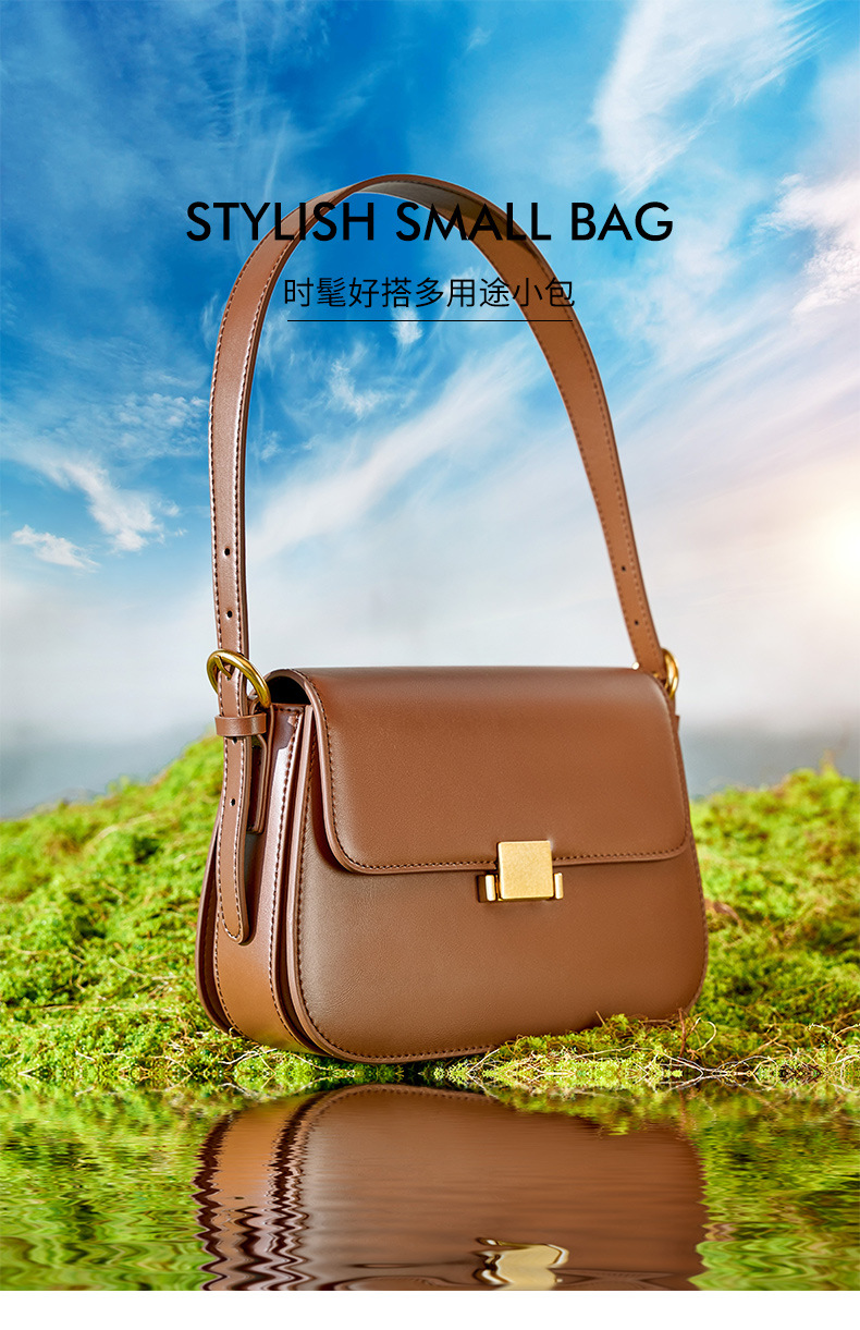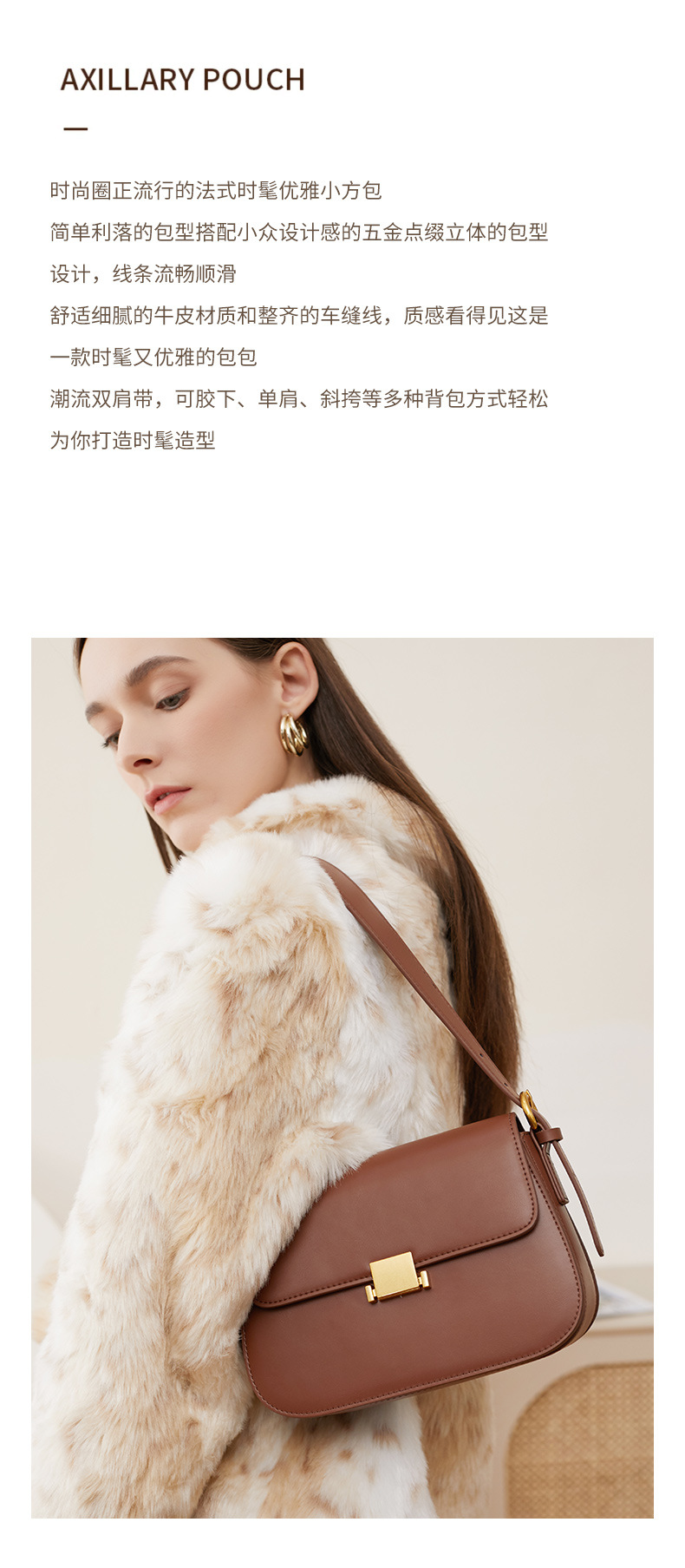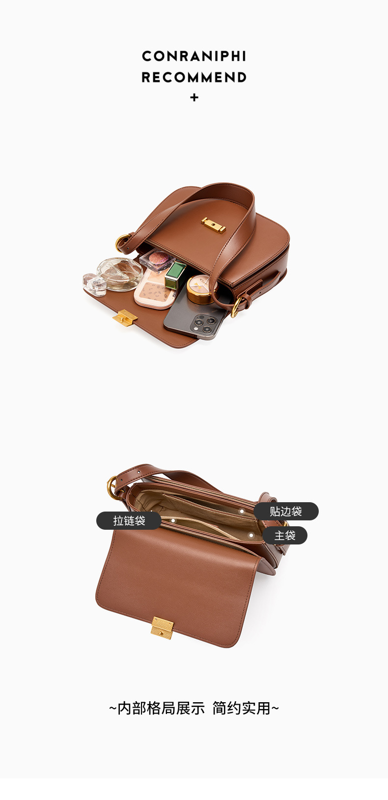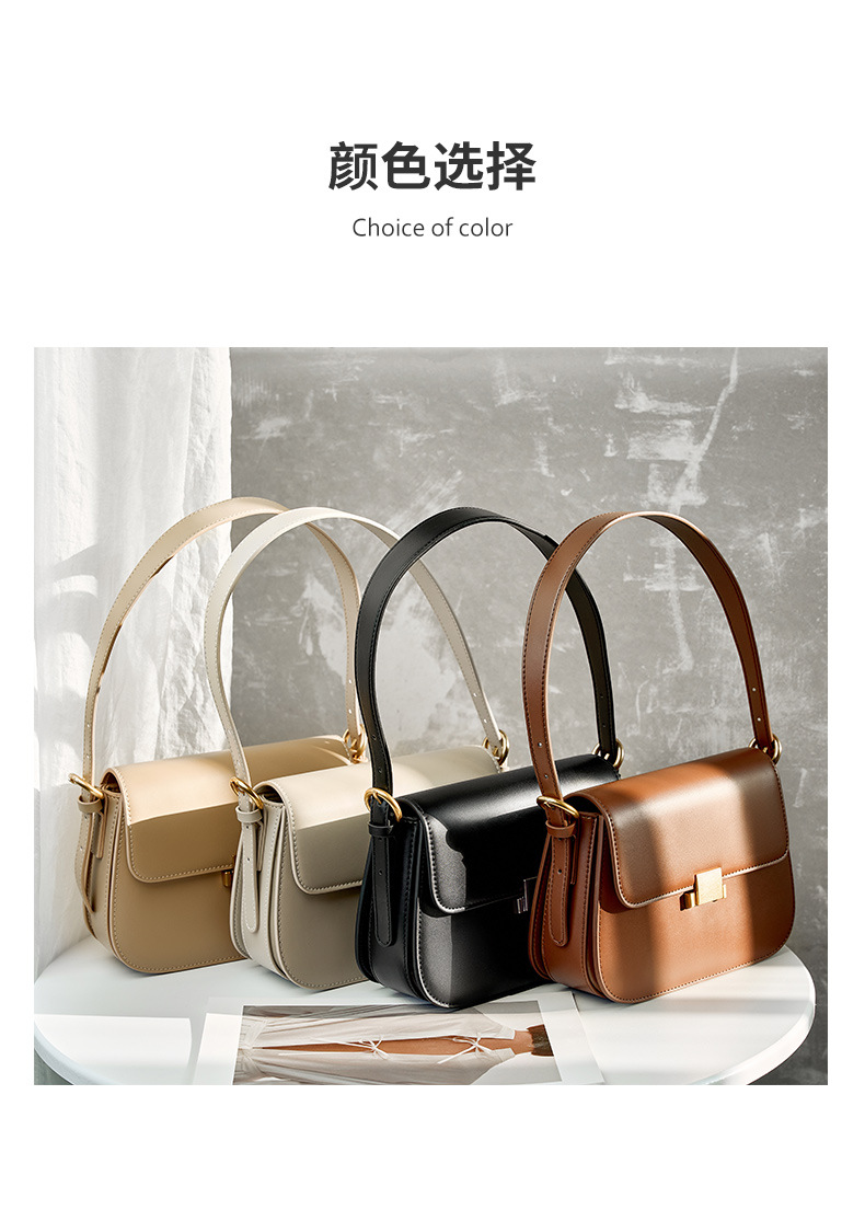 都市简约2025新款高颜值单肩斜挎包小众复古真皮时尚锁扣手提女包